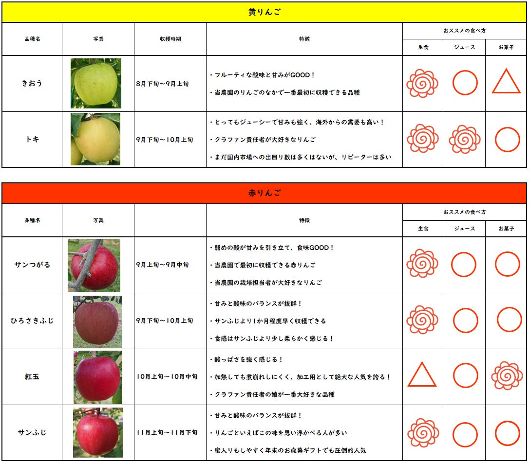 表内の「おススメの食べ方」は一農家の主観です