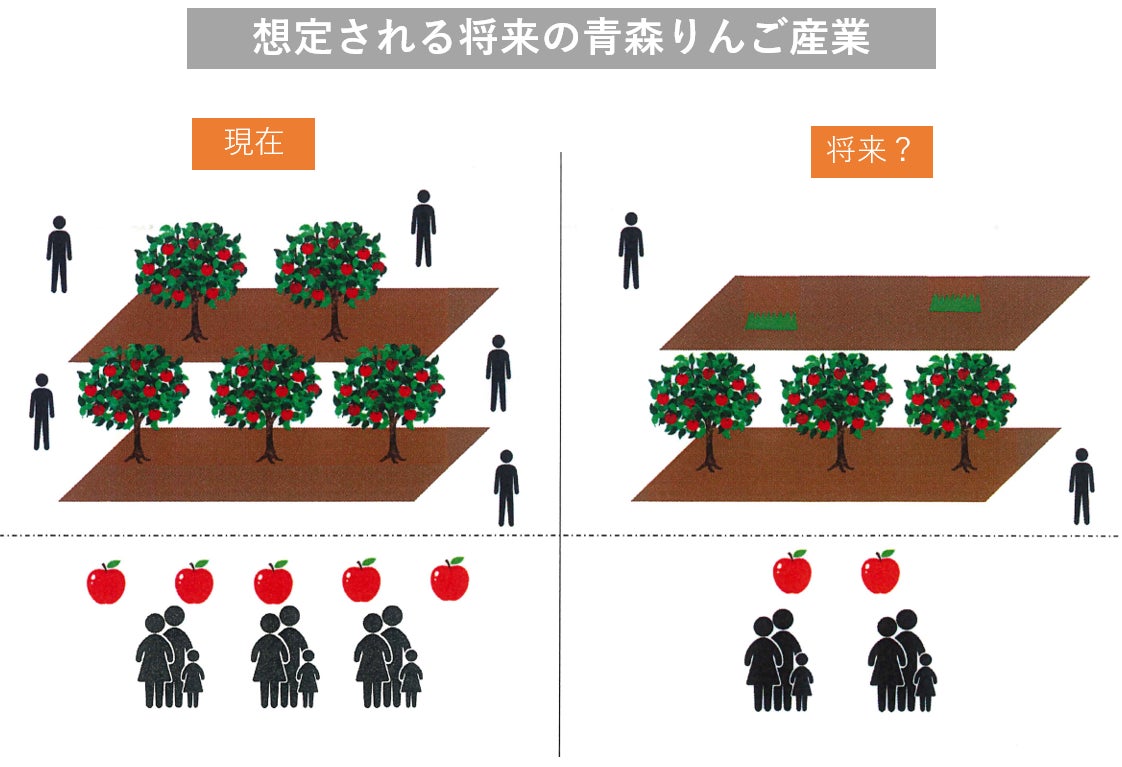 でも、これから先、5年後、10年後、20年後を考えたとき、皆さんにりんごを食べていただけているでしょうか?昔と比べると食生活の多様化や、1年を通して国内外の美味しい果物やスイーツが買えるようになったことで、りんごの消費量は年々減少してきています。