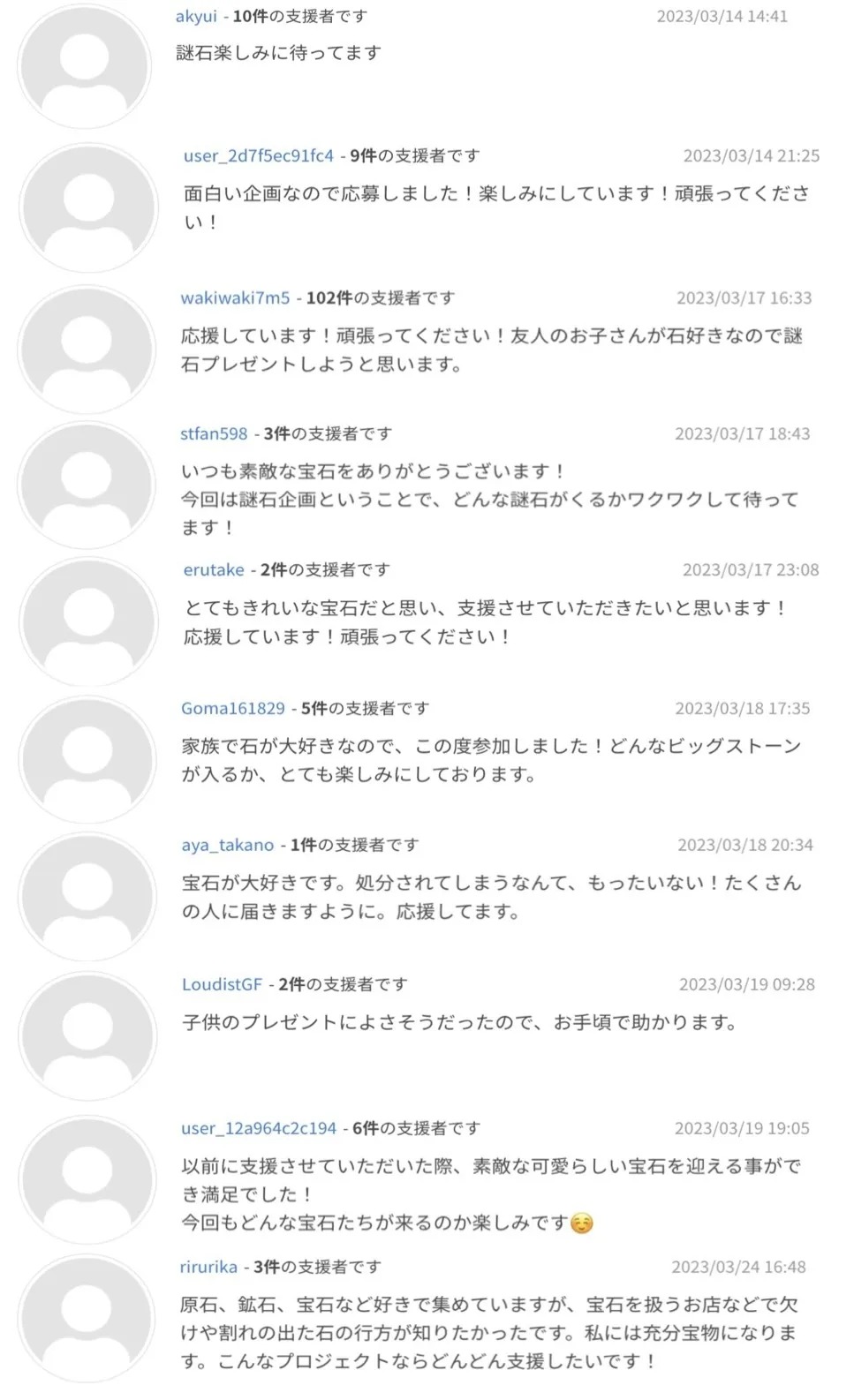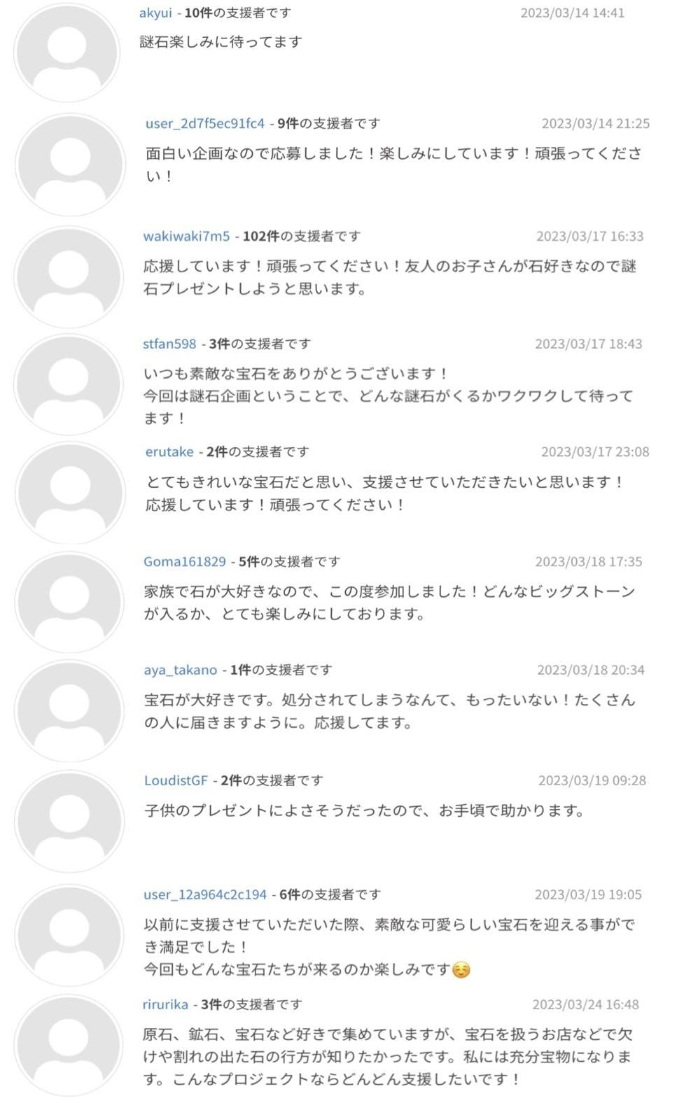こちらはこのプロジェクトのご支援者様から頂いたコメントの一部です。