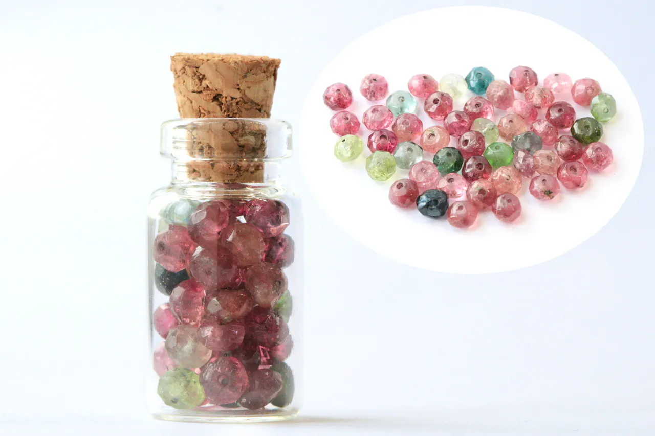 約4㎜の穴あきトルマリンビーズが小瓶いっぱいに入っております。
