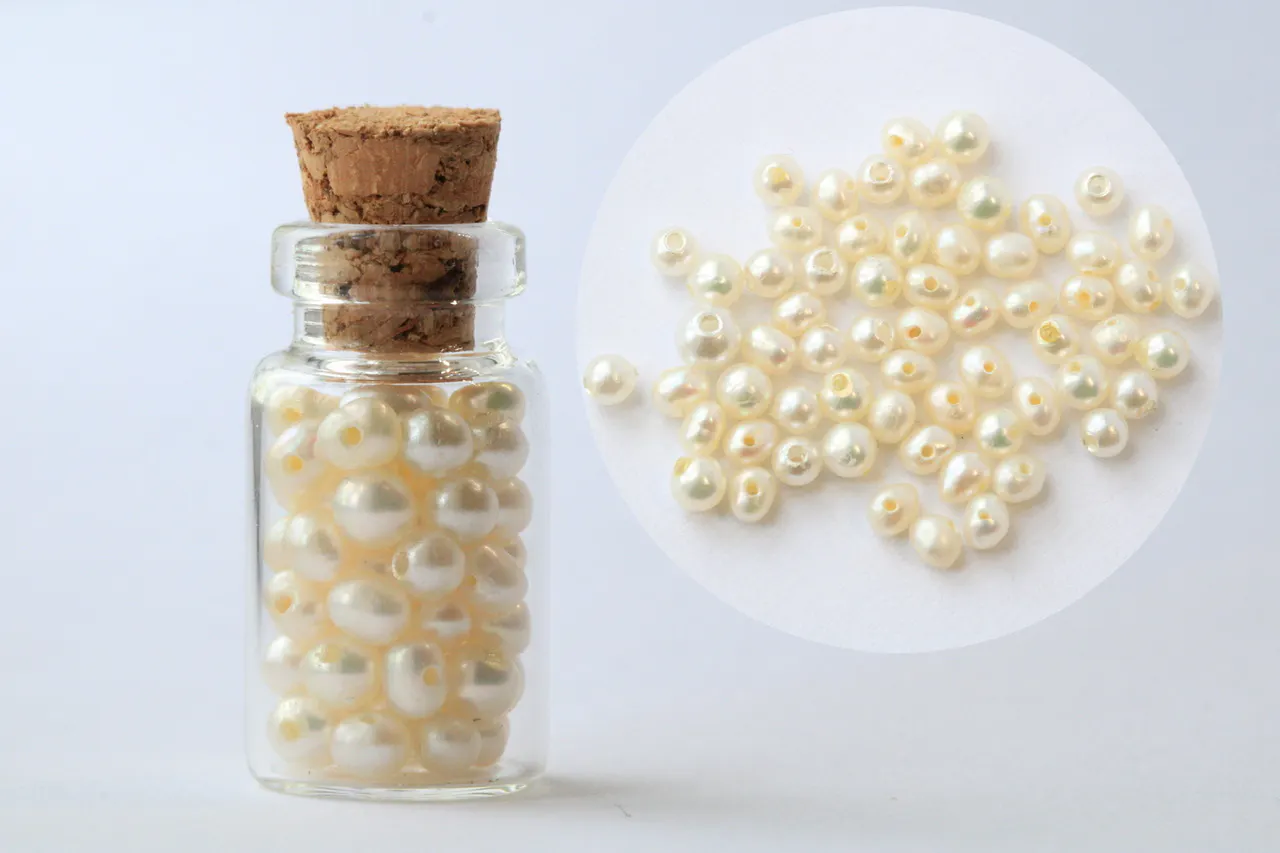 約2㎜〜約4㎜以下の穴あきパールが小瓶いっぱいに入っております。