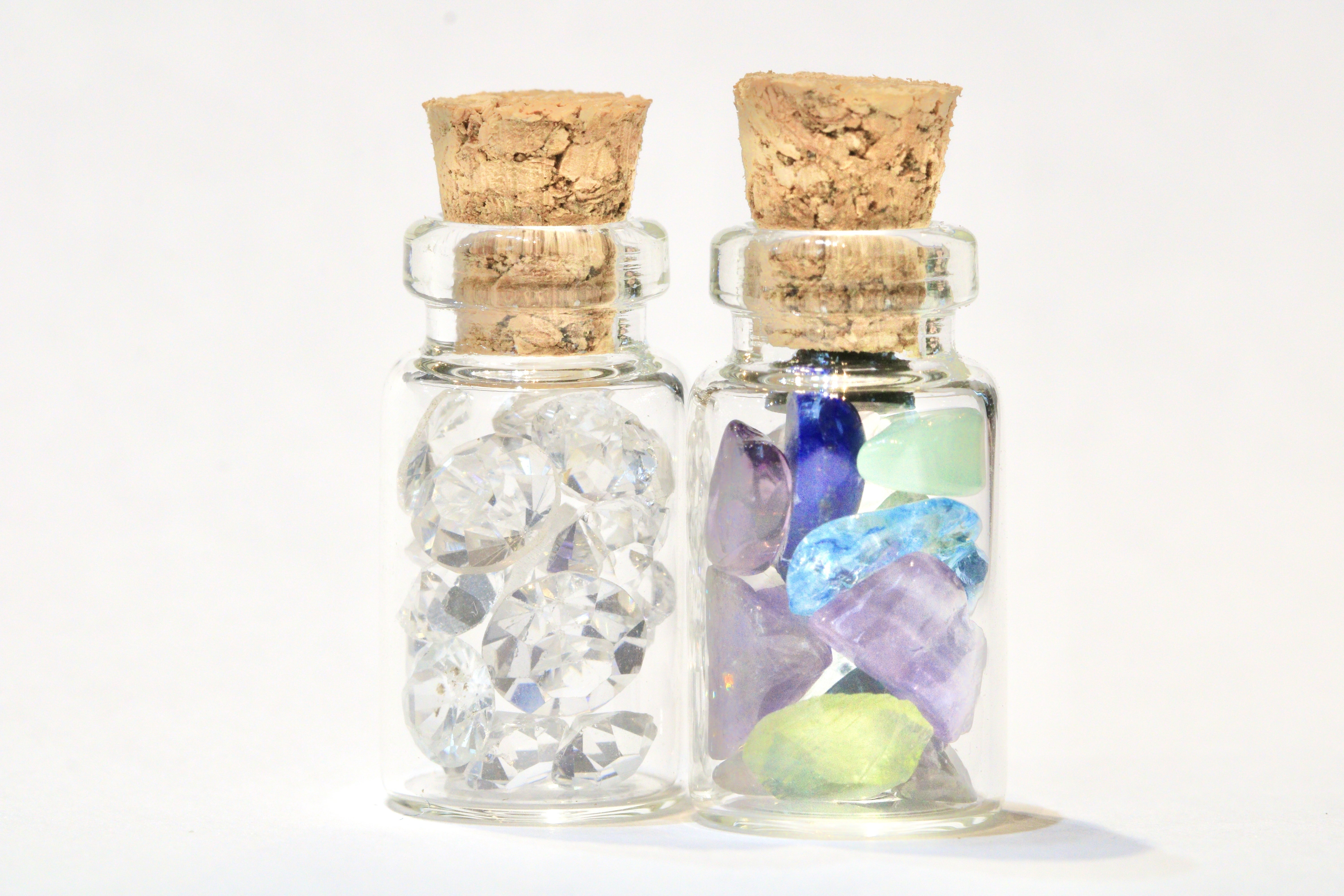 一つは(写真左)カラーレスの透明な石(模造石・人造石含む)を小瓶に詰めました!