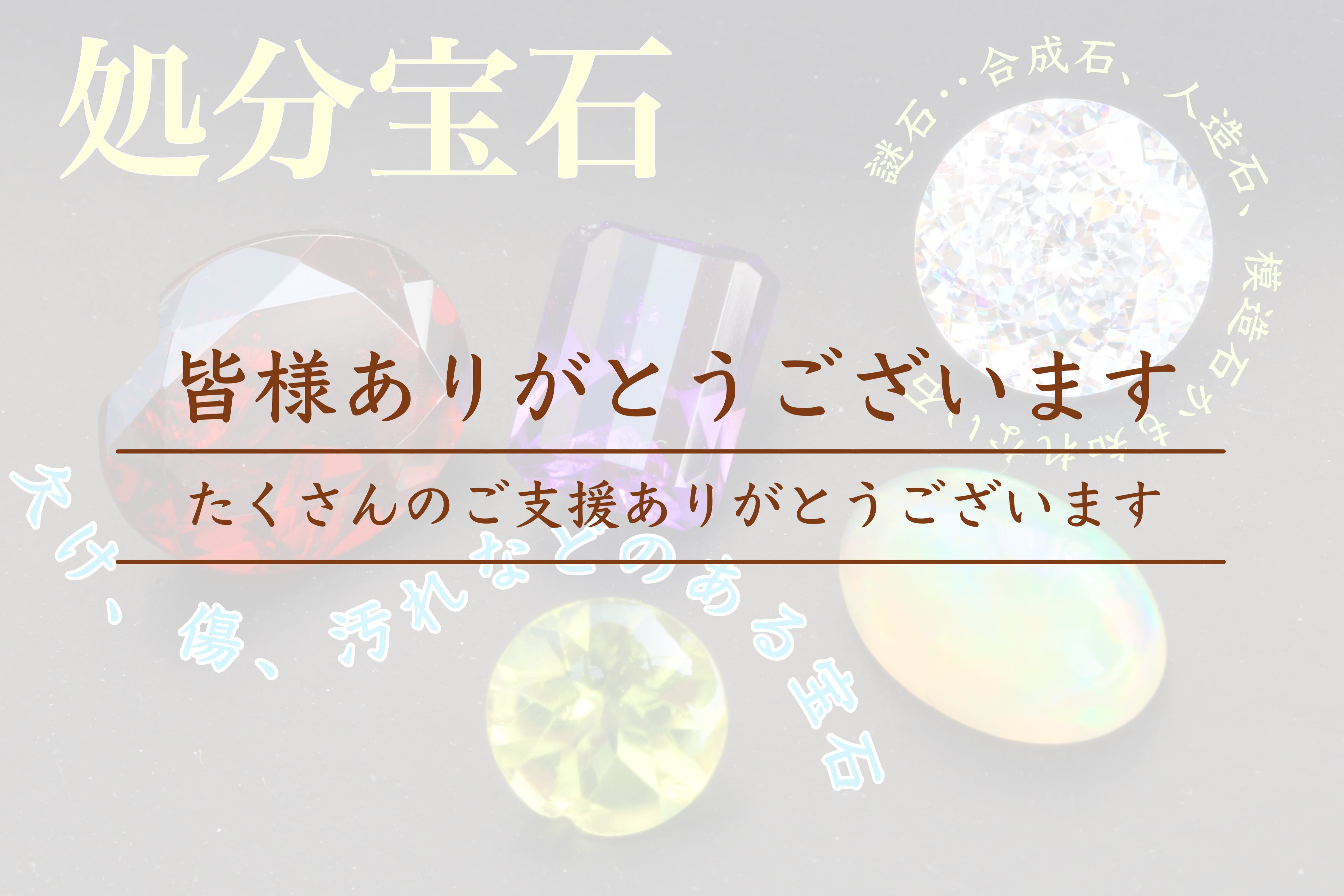 2023/04/10 13:20ご支援頂いた皆様ありがとうございました。最終目標としていたご支援者様200名を突破し、終えることができました!全てのリターン完売は叶いませんでしたが、お店にある処分予定の石たちが多くの方の元にお届けできるのがとても嬉しく思います。少しでも早くリターンをお届けできるように頑張りますので今しばらくお持ちください。最後になりますが皆様のおかげで今まで光を失っていた宝石や石が再び輝ける場所を頂くことができました。改めてご支援頂きありがとうございます。これからどんな宝石や石が届くかお楽しみにお待ちくださいませ。 もっと見る
