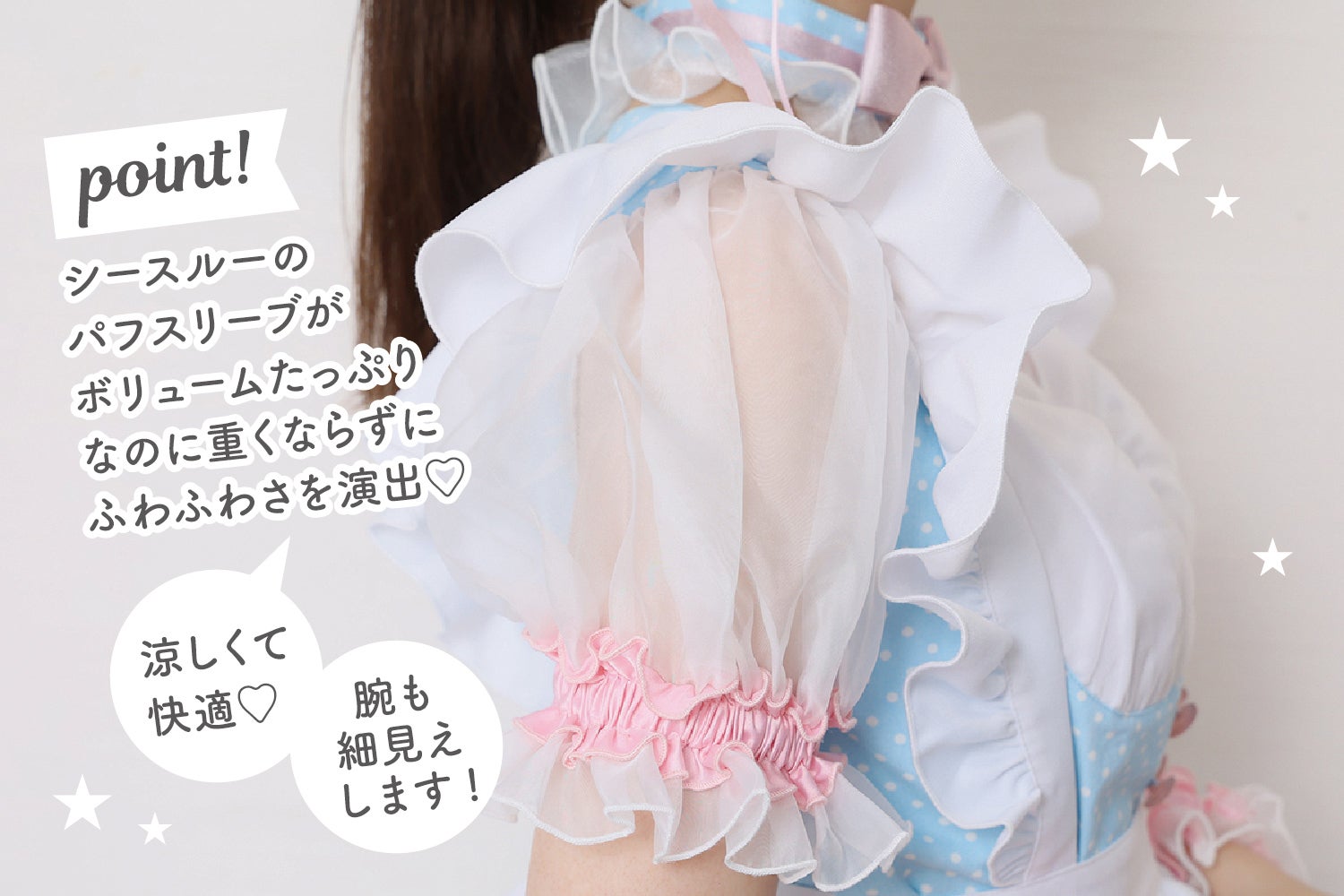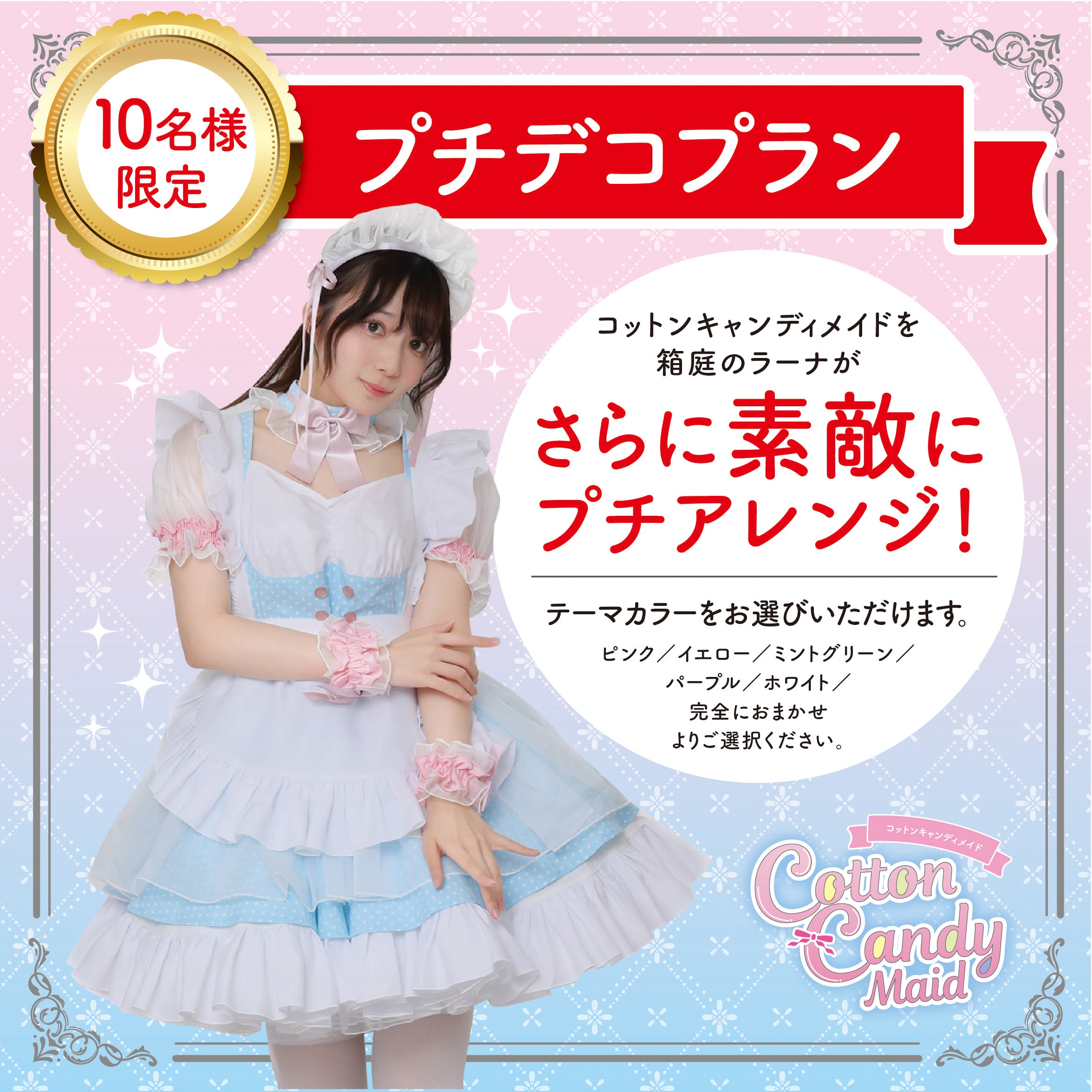 コットンキャンディメイドをより楽しんでいただきたいという思いで、箱庭のラーナが衣装をプチアレンジしてお届け致します!