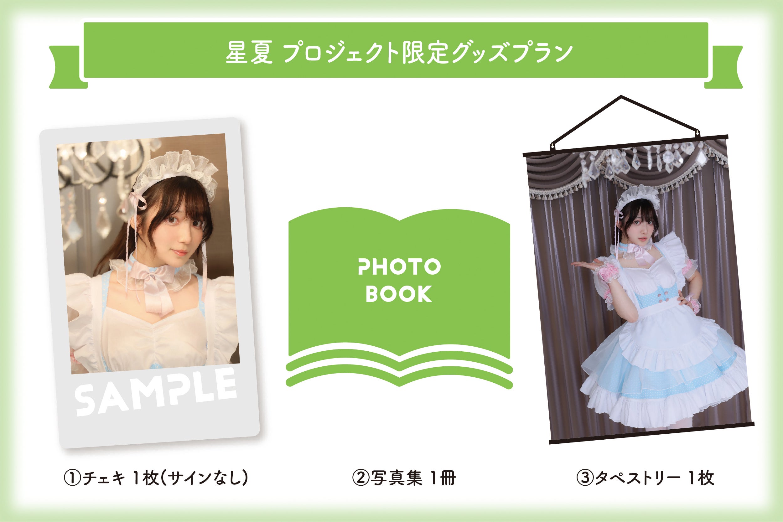 コットンキャンディメイドのモデルを務めた、コスプレイヤー「星夏」のクラウドファンディング限定リターンです!コットンキャンディメイドを着用した写真集など、ファン必見アイテムです。