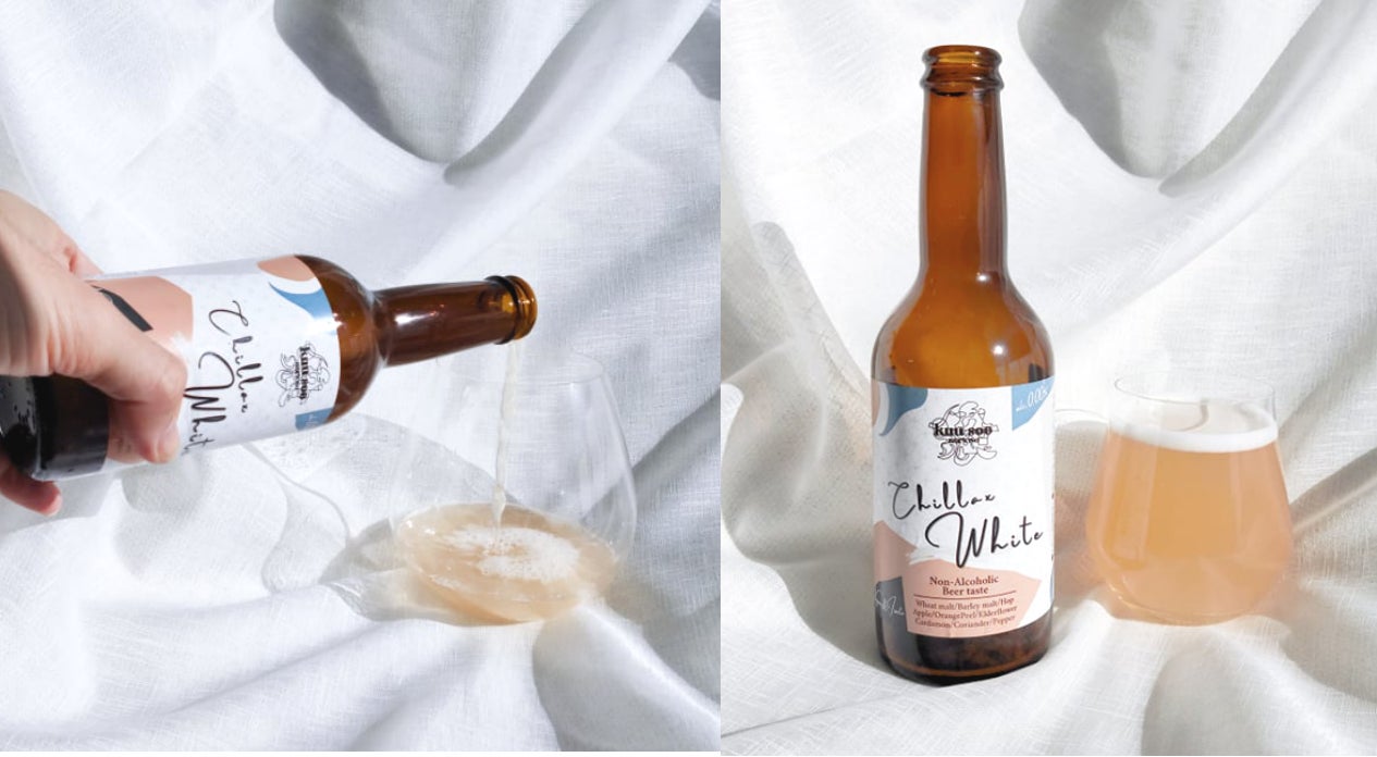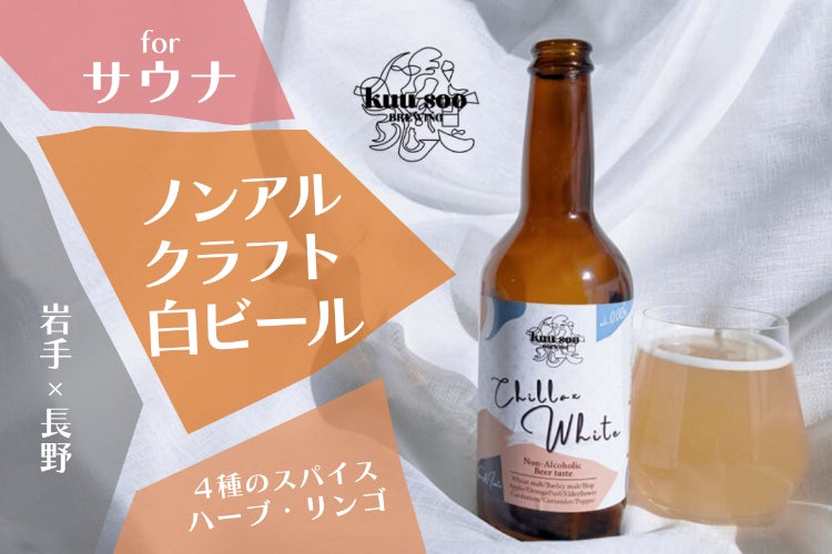 前回の第一弾は、本や映画といったカルチャーシーンと合わせたノンアル黒ビールを販売。今回は、サウナやアクティビティ後に、落ち着きつつも華やかな刺激がほしいシーンを意識した、スパイス&ハーブ入りノンアルコールクラフト白ビール(0.00% )を長野の南信州ビールさんとともに開発しました!