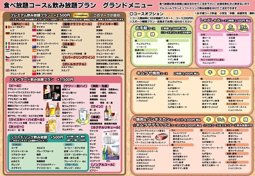 焼肉&ジンギスカンコース+スタンダード飲み放題