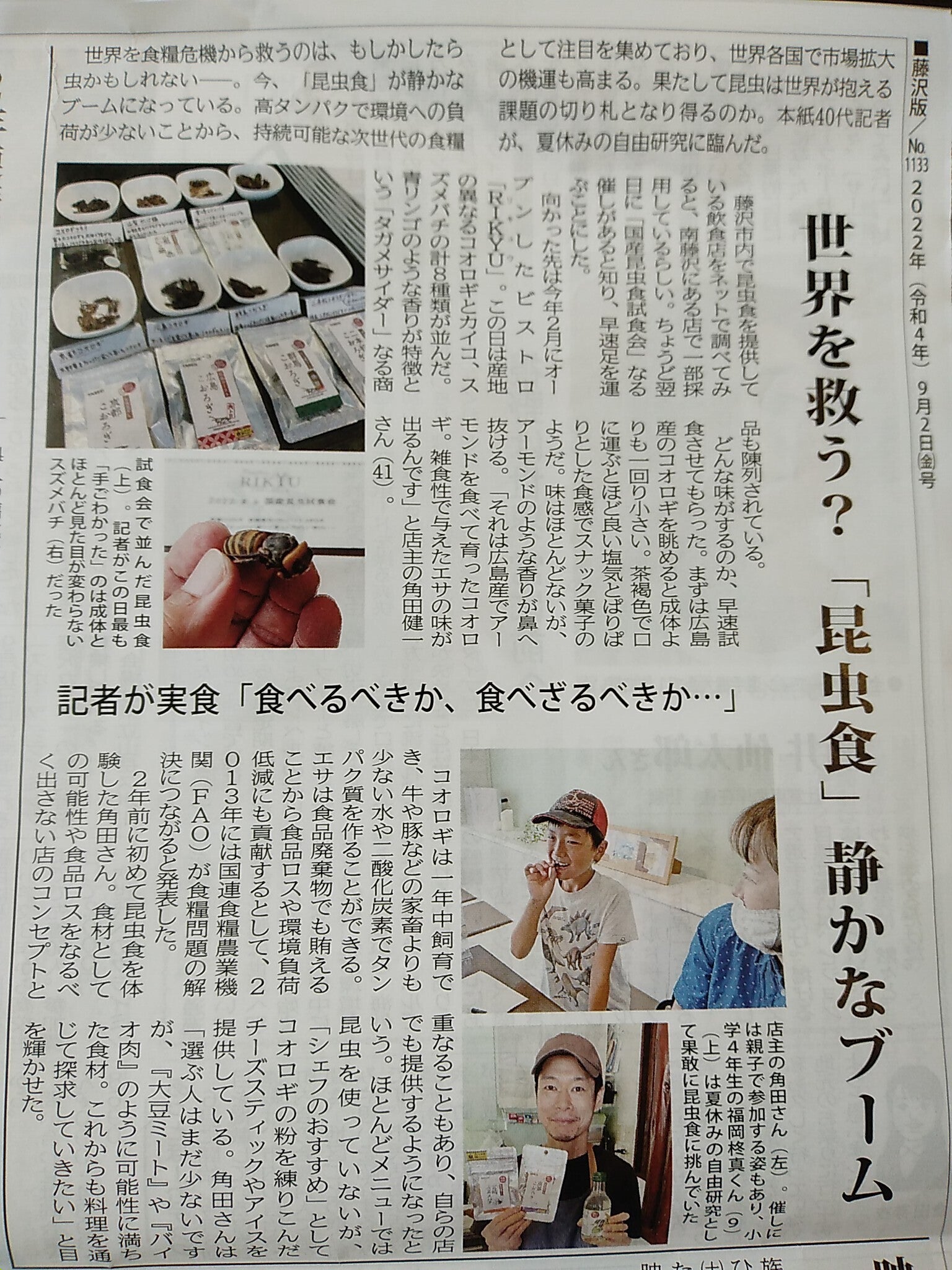 ■国産昆虫の試食会開催(7月30日、8月6日、8月20日)■