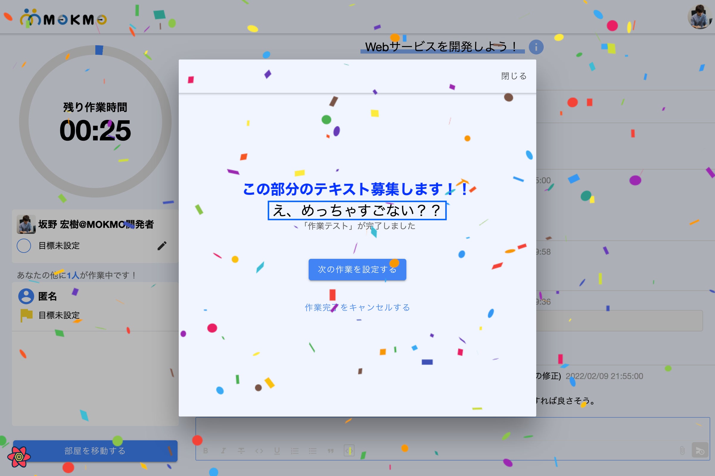 そうすることで、あなたの作業履歴に、完了した作業の内容が記録されるとともに、作業完了を祝う紙吹雪が表示されます!