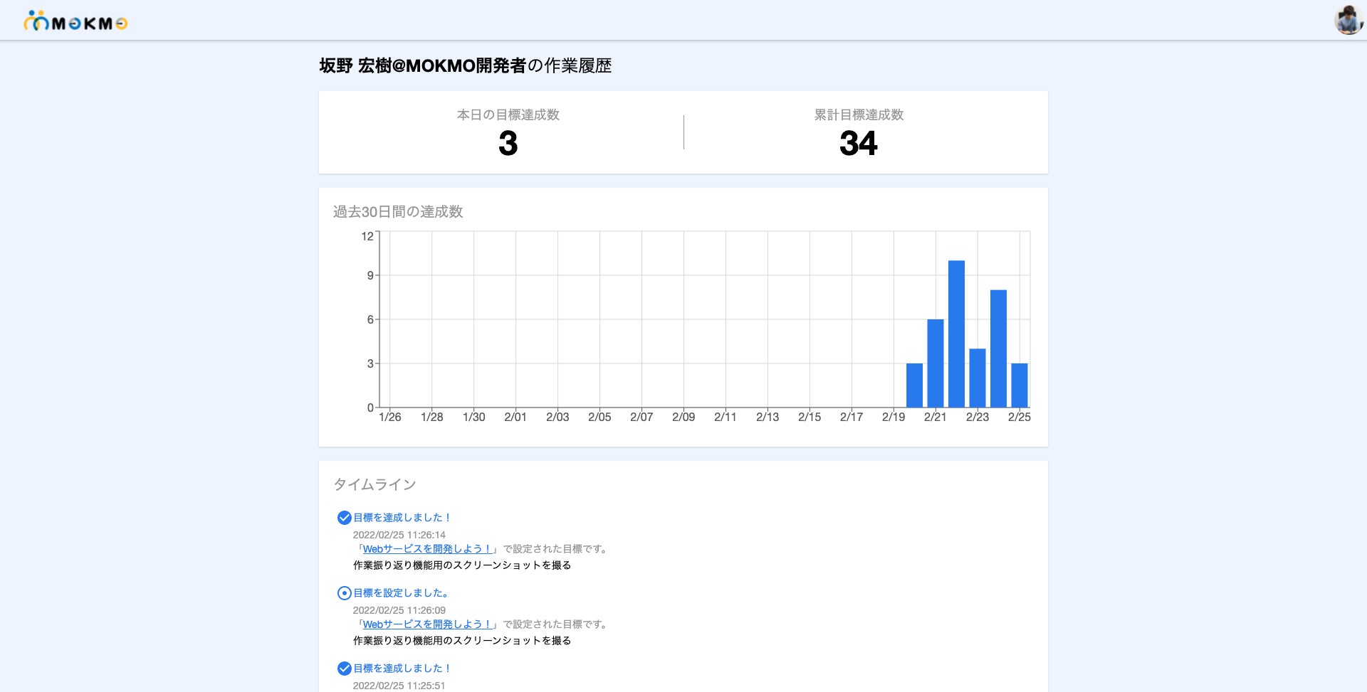 MOKMOでは、自動的に作業の設定や完了などのMOKMO上での活動を記録しており、プレミアムプランに加入された方限定にはなりますが、簡単に振り返りができるようになっています。