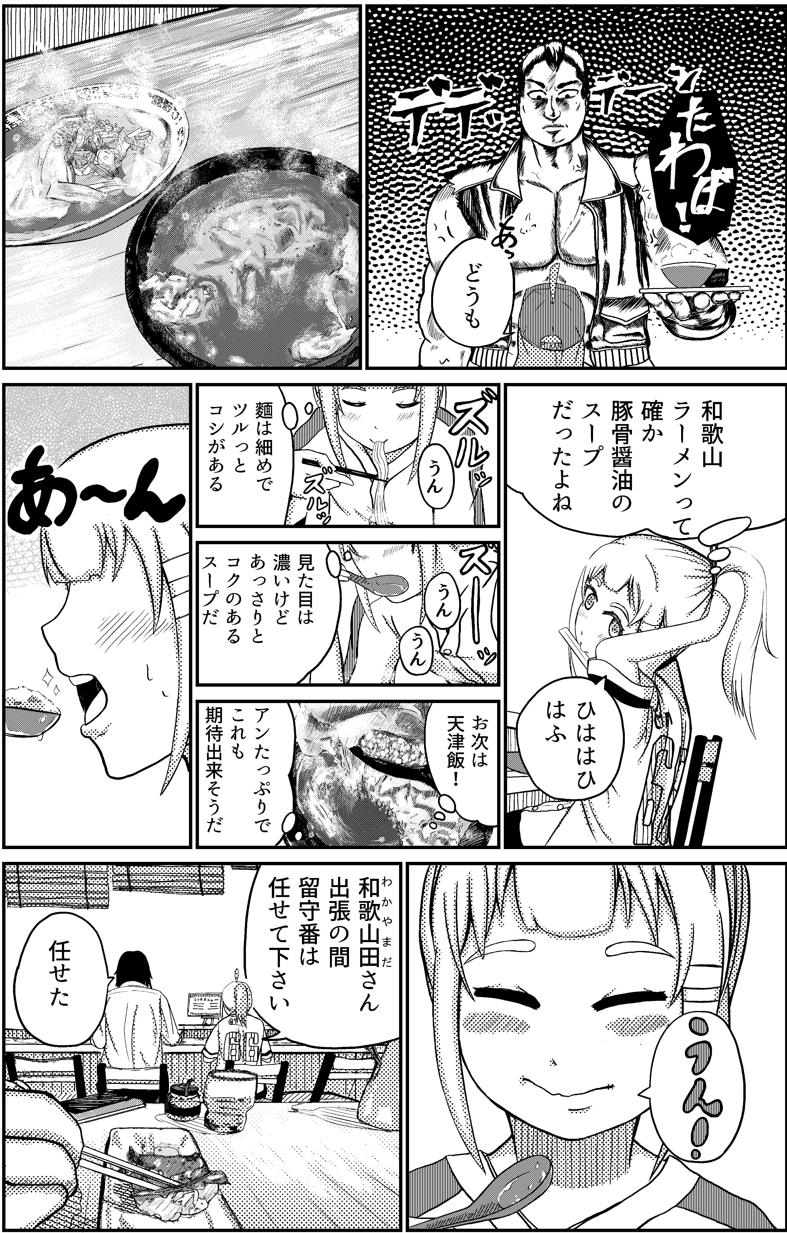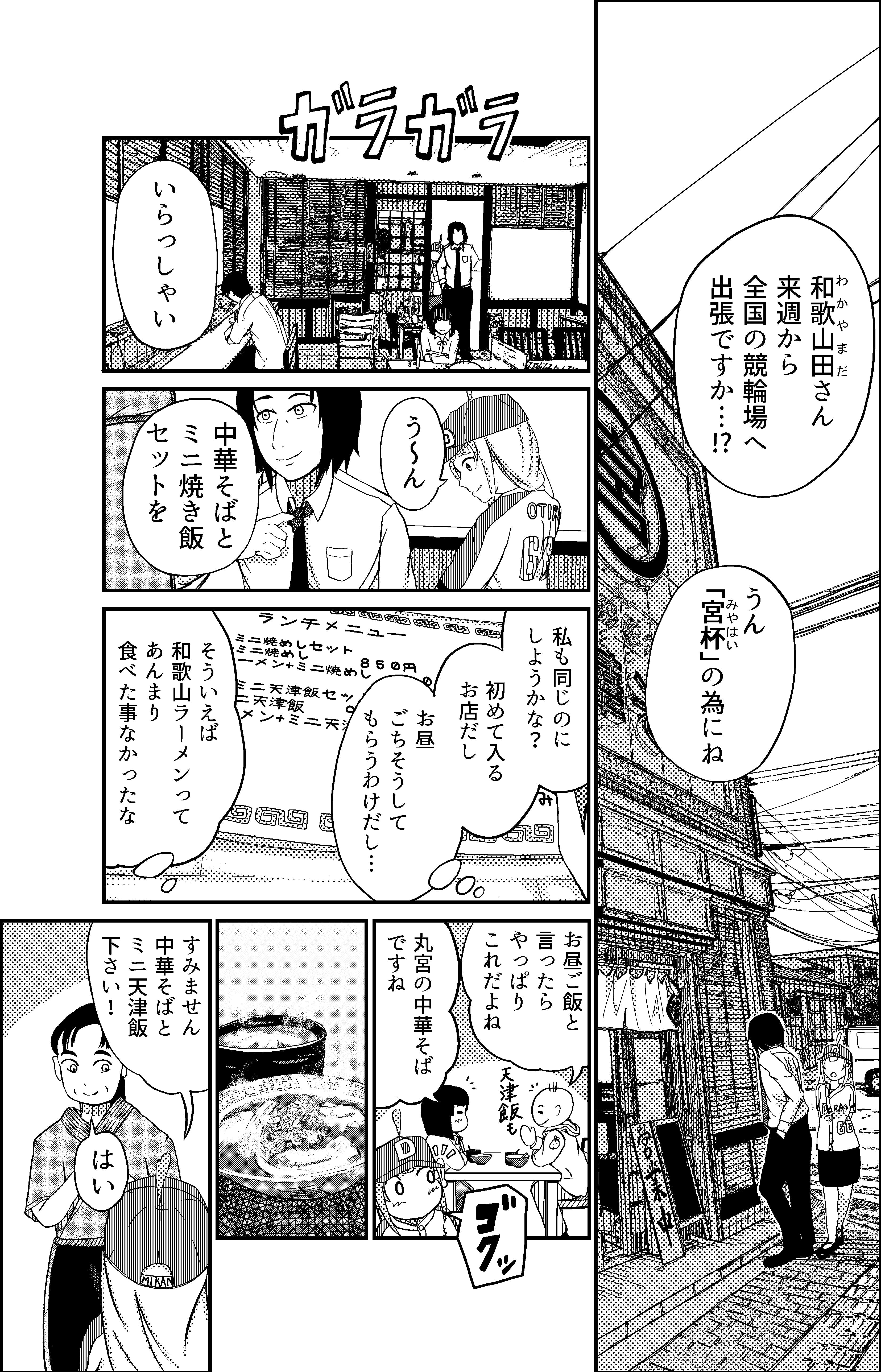 また、和歌山で開催する予定だった「高松宮記念杯競輪」ではキッチンカーにて「和歌山ラーメン」「せち焼き」「マグロの串焼き」「熊野牛バーガー」を出す予定だったので、実際に飲食店などに取材させていただき、漫画にしました。