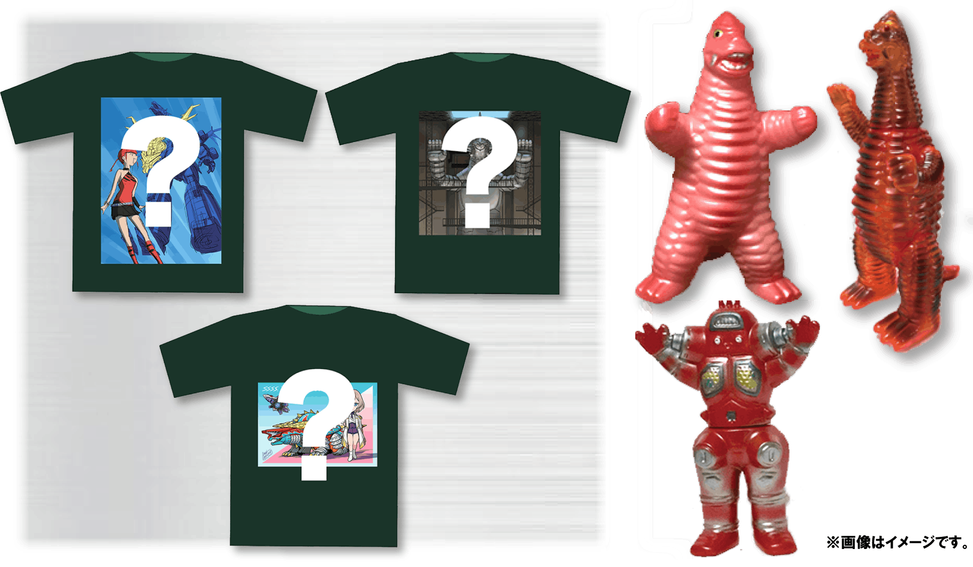<第二弾>本原画展描き下ろしのイラストを使用した「限定Tシャツ」や怪獣ファン必見の開田裕治・西川伸司のイラストを使用したヘッダー付き「限定カラーソフビ」をご用意する【GOODコース】!