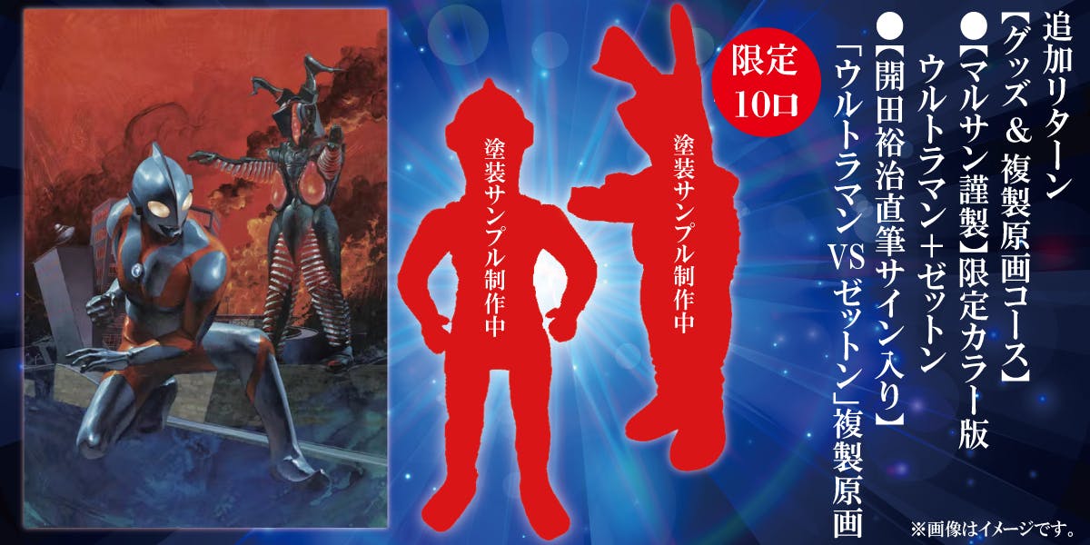 <限定10口>【マルサン謹製】限定カラー版ウルトラマン+【マルサン謹製】限定カラー版ゼットン+【開田裕治直筆サイン入り】「ウルトラマンVSゼットン」複製原画