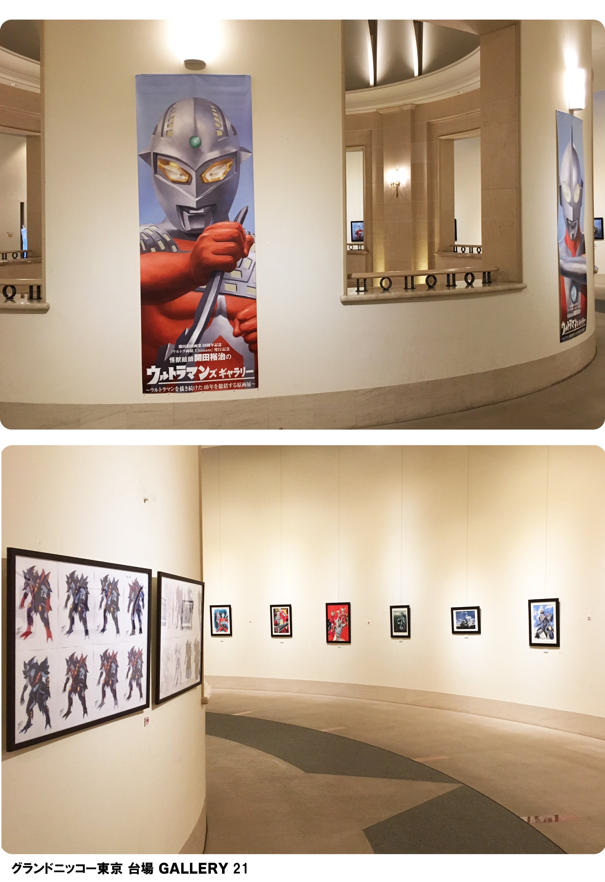 展示会場も怪獣絵師たちの作品の素晴らしさをコロナ禍でも実体験するための最も適した会場として「グランドニッコー東京 台場 GALLERY 21」をご用意しました。ホテルの優雅さに加え、回廊の空間は天井の高いオープンなスペースで、会場でしか得られない原画の持つ本来のパワーを感じることができます。