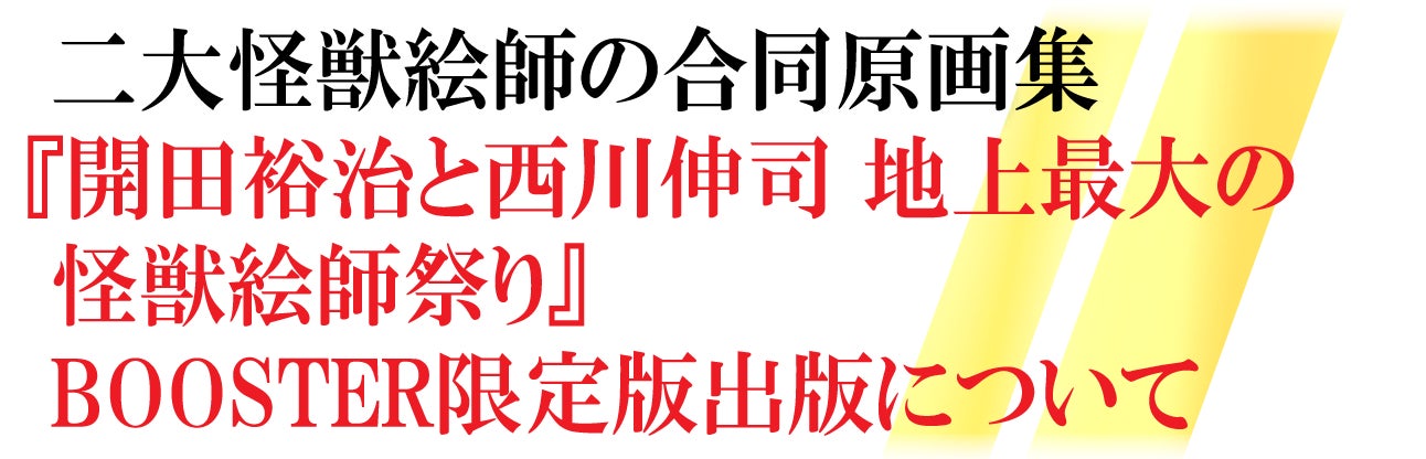 この度、本原画展の開催を記念して日本が誇る二大怪獣絵師の合同原画集『開田裕治と西川伸司 地上最大の怪獣絵師祭り』BOOSTER限定版出版プロジェクトを立ち上げさせていただきました。