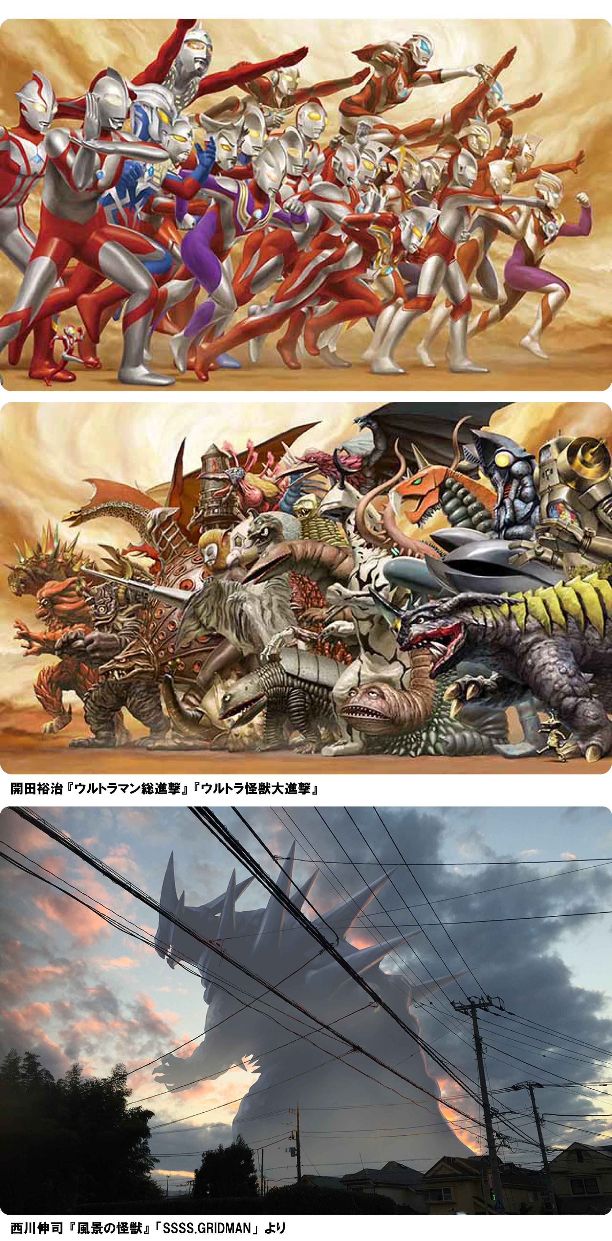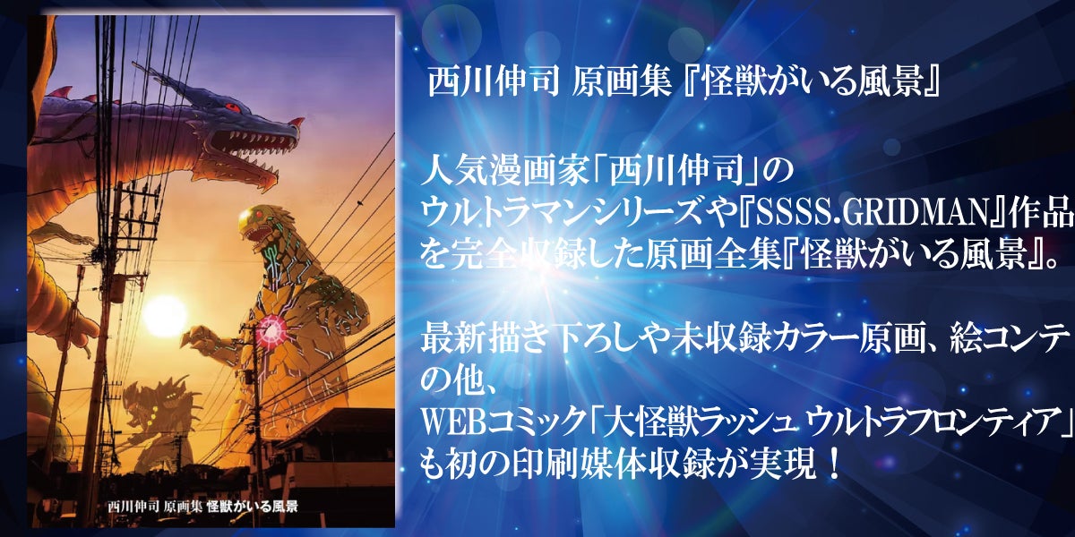 そして、「西川伸司」のウルトラマンシリーズや『SSSS.GRIDMAN』作品を完全収録した豪華200ページに及ぶ原画全集『怪獣がいる風景』とのセットです。