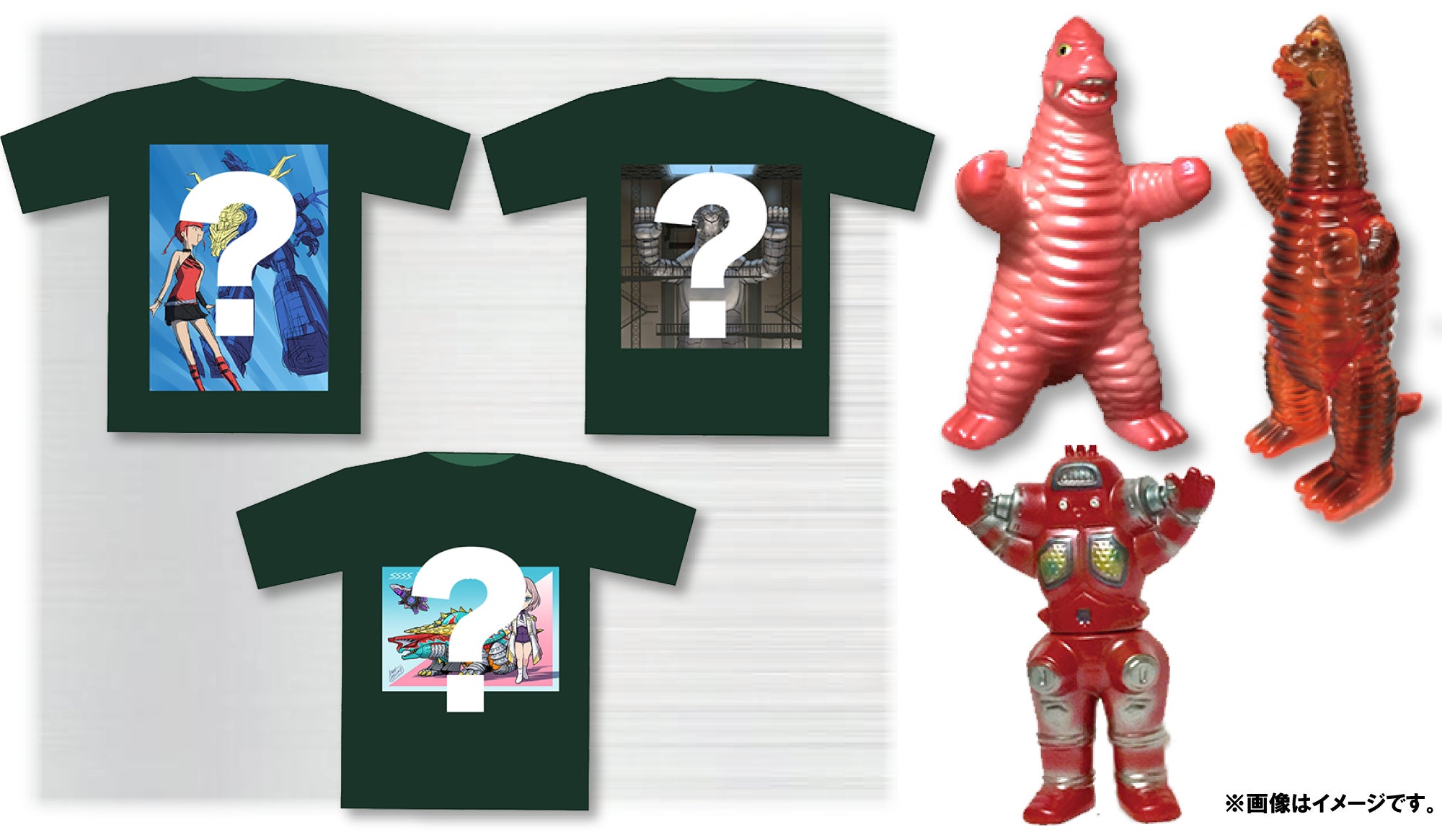 <第二弾>本原画展描き下ろしのイラストを使用した「限定Tシャツ」や怪獣ファン必見の開田裕治・西川伸司のイラストを使用したヘッダー付き「限定カラーソフビ」をご用意する【GOODコース】!