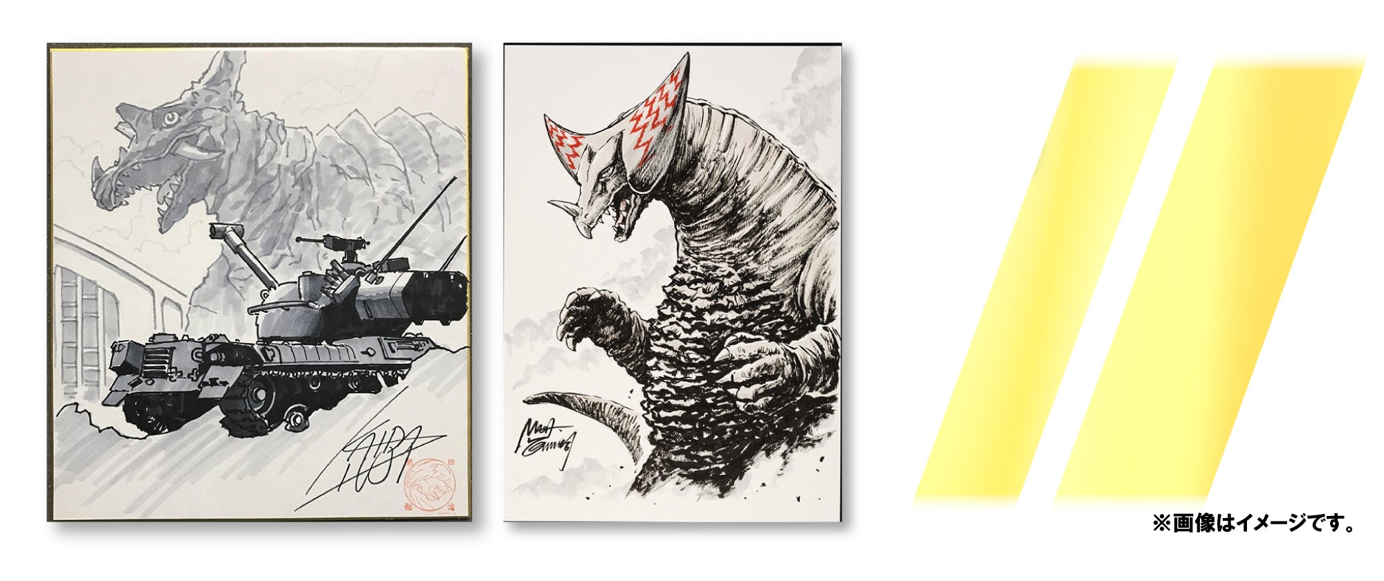 開田裕治、西川伸司二大怪獣絵師へのカラーリクエストイラストは今回を逃すと次回は無いかも⁈西川伸司パートカラーは表現力をUPしたいとの思いから、原画展会場で販売するモノクロ色紙と同じ価格に据え置いて挑む新企画です!サイン会とは違った、構図やレイアウト、怪獣の体表処理やキャラクターの表情を手にする貴重な機会です、ぜひ、ご支援検討くださいませ。