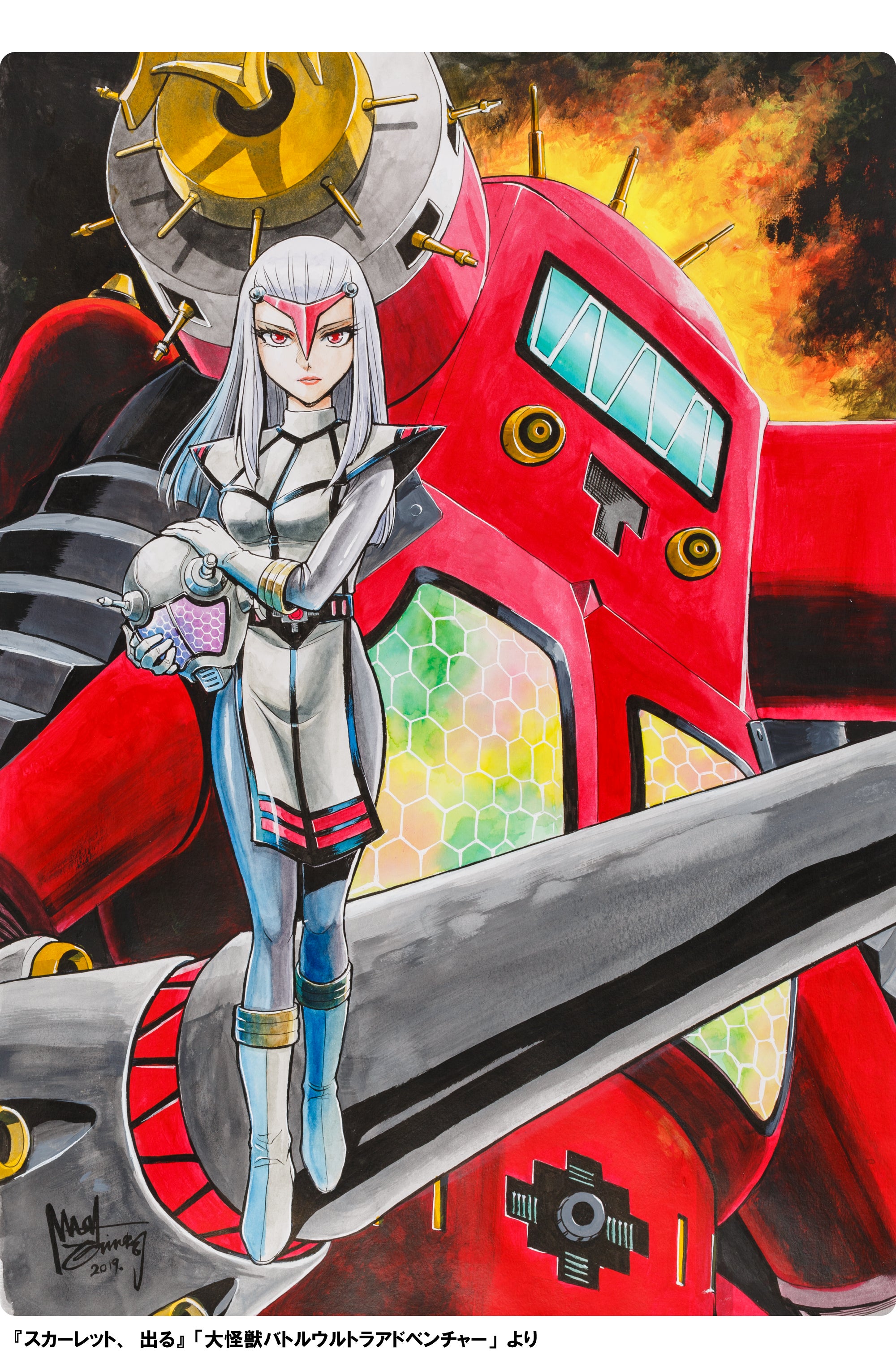 <限定20口>【マルサン謹製】限定カラー版キングジョー+【西川伸司直筆サイン入】「スカーレット、出る!」複製原画