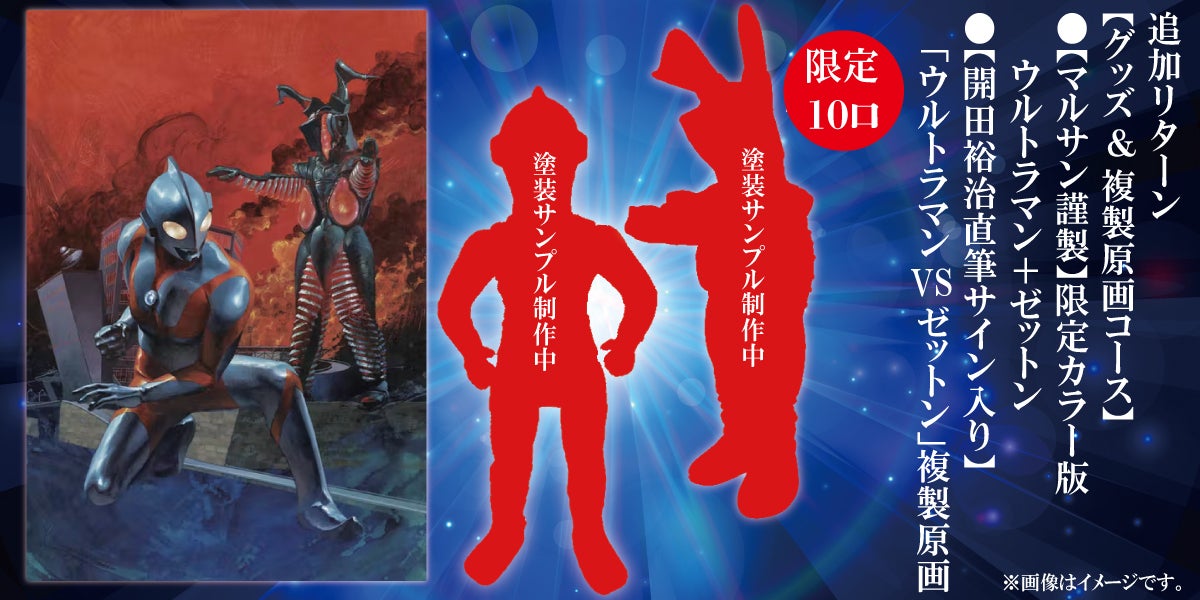 <限定10口>【マルサン謹製】限定カラー版ウルトラマン+【マルサン謹製】限定カラー版ゼットン+【開田裕治直筆サイン入り】「ウルトラマンVSゼットン」複製原画