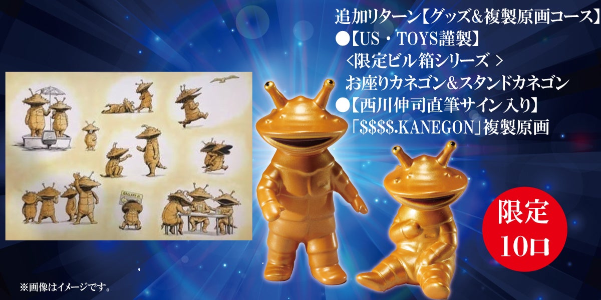 <限定10口>【U.S.TOYS謹製】<限定ビル箱シリーズ >お座りカネゴン&カネゴン+【西川伸司直筆サイン入】「$$$$.KANEGON」複製原画