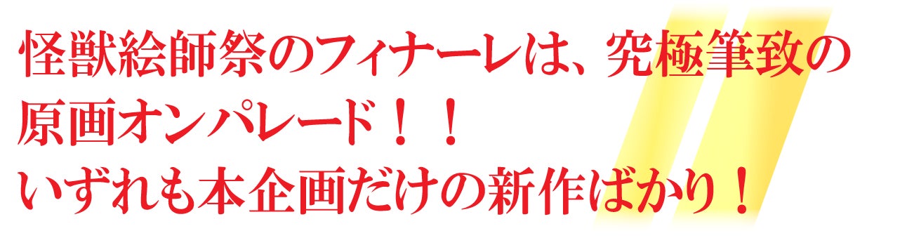 この二人が描き出す原画は、全く異なるベクトルの作品から怪獣たちの世界へ誘う魅惑の作品まで圧倒的な筆致で観る者を魅了します。