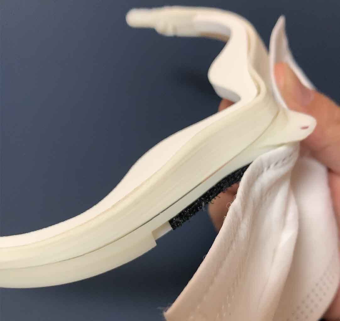 このフレームを付けたマスクをすることにより、飲食時以外は自動で閉まるので感染防止のあらたな対策となり、経済活動を損なうことなく感染の拡大を防ぐことを目的に作成いたしました。