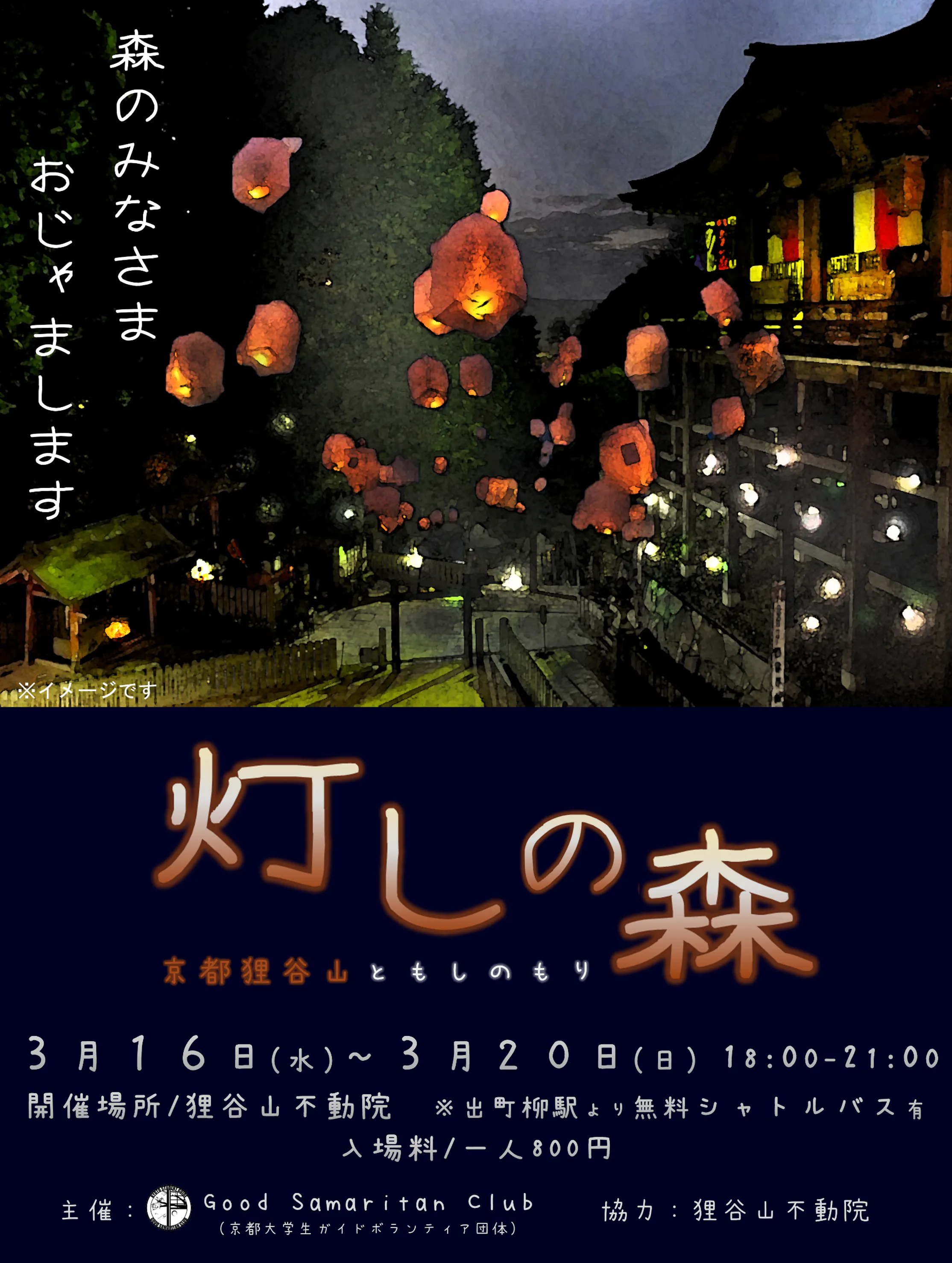 さて、今日(昨日?)の活動報告です。様々準備を進めましたが、パッと思いつくものを挙げると、ポスター制作です。活動報告書を書き始める直前まで、一昨日の狸谷山不動院とのMTをもとにポスターのデザインを練っていました。とはいっても、ポスターはクラファン告知のために一度作っていたので、その修正です。主な変更点としては情報を付け足したのと、ロゴ化した「灯しの森」の字があります。せっかくなので、暫定版を貼っておきます。ぜひご覧ください。ここからも修正するかもしれないですが、、、