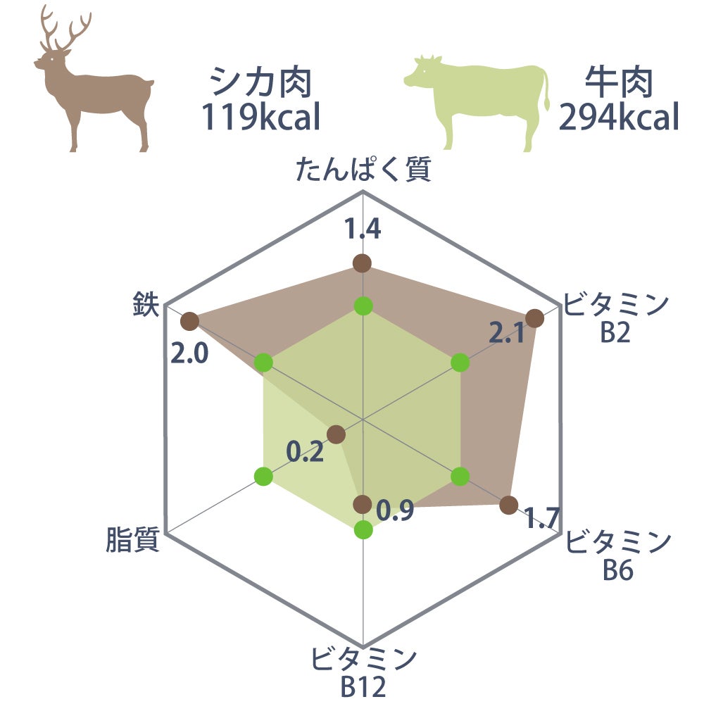 シカ肉は脂質が牛肉と比較して1/6以下。