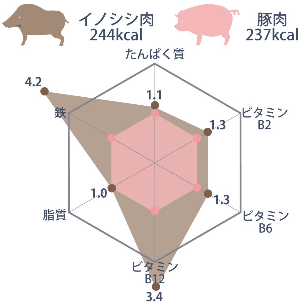 イノシシに含まれる鉄分は豚肉の約4倍、