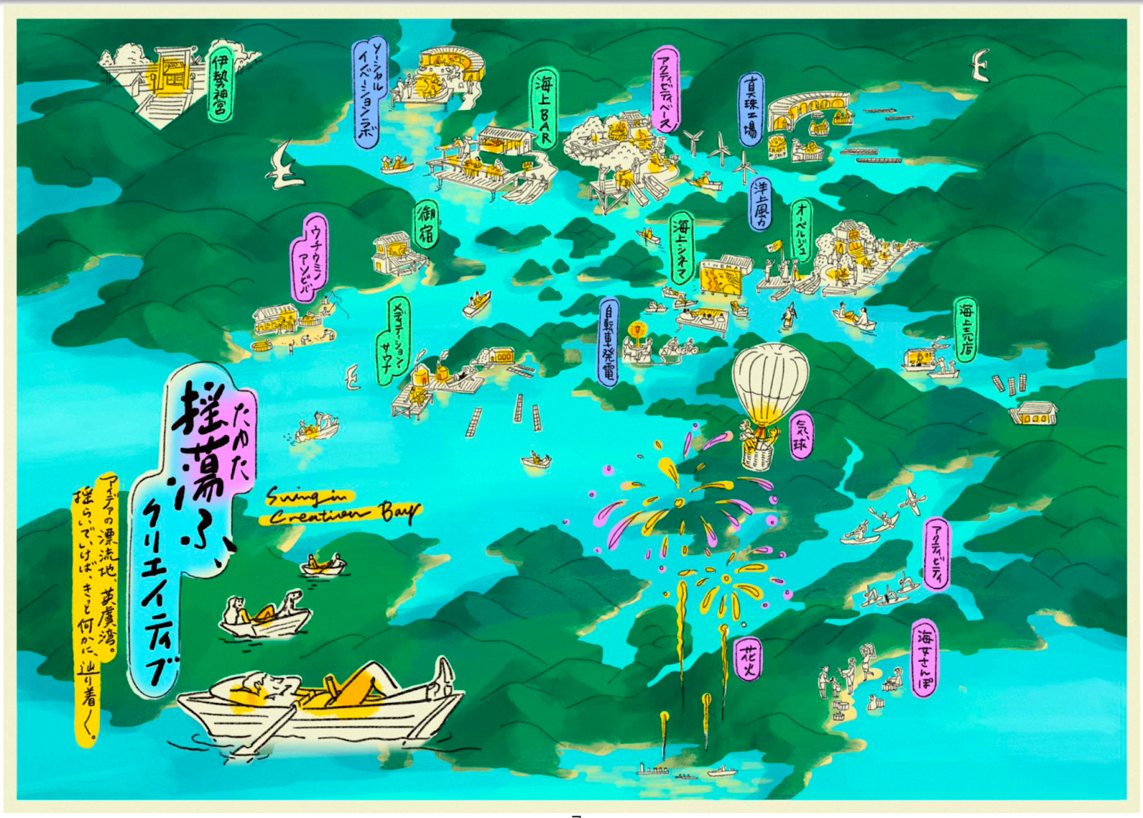 エンジョイ部分では、真珠工場に残されたいかだの上でヨガ体験や、開放感あふれる水辺でBBQなど。五感を刺激して活用できる方法を、楽しみながら考えられたらと思っています。