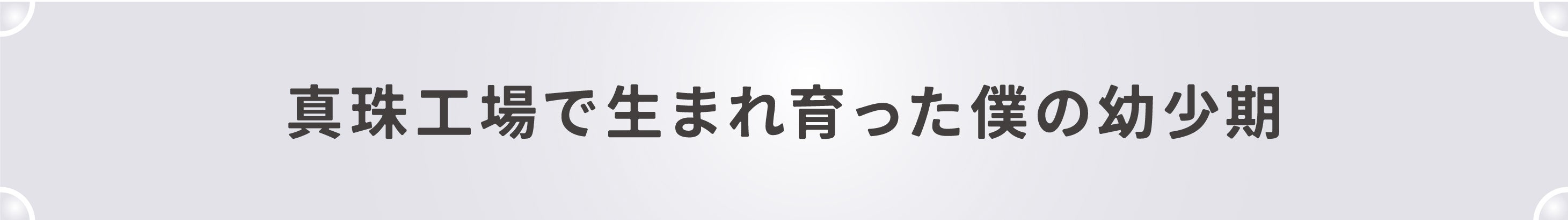 真珠工場で育った僕は、簡単な仕事の手伝いをしたり、船に乗って魚を釣ったり、海の中で泳いだり、カニをとったり...と、英虞湾の豊かな自然の中で幼少期を過ごしました。