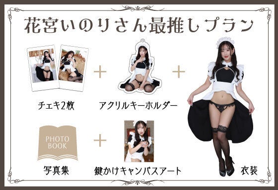花宮いのりさんの今回のグッズが全て詰まった上に衣装もついてくる花宮いのりさんの最推しプランになります!