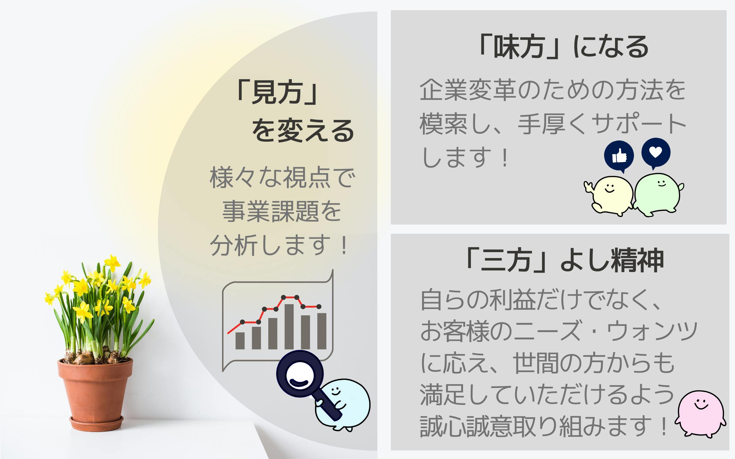 「三方」よしの考え方を大切にすることで幸せが生まれます。