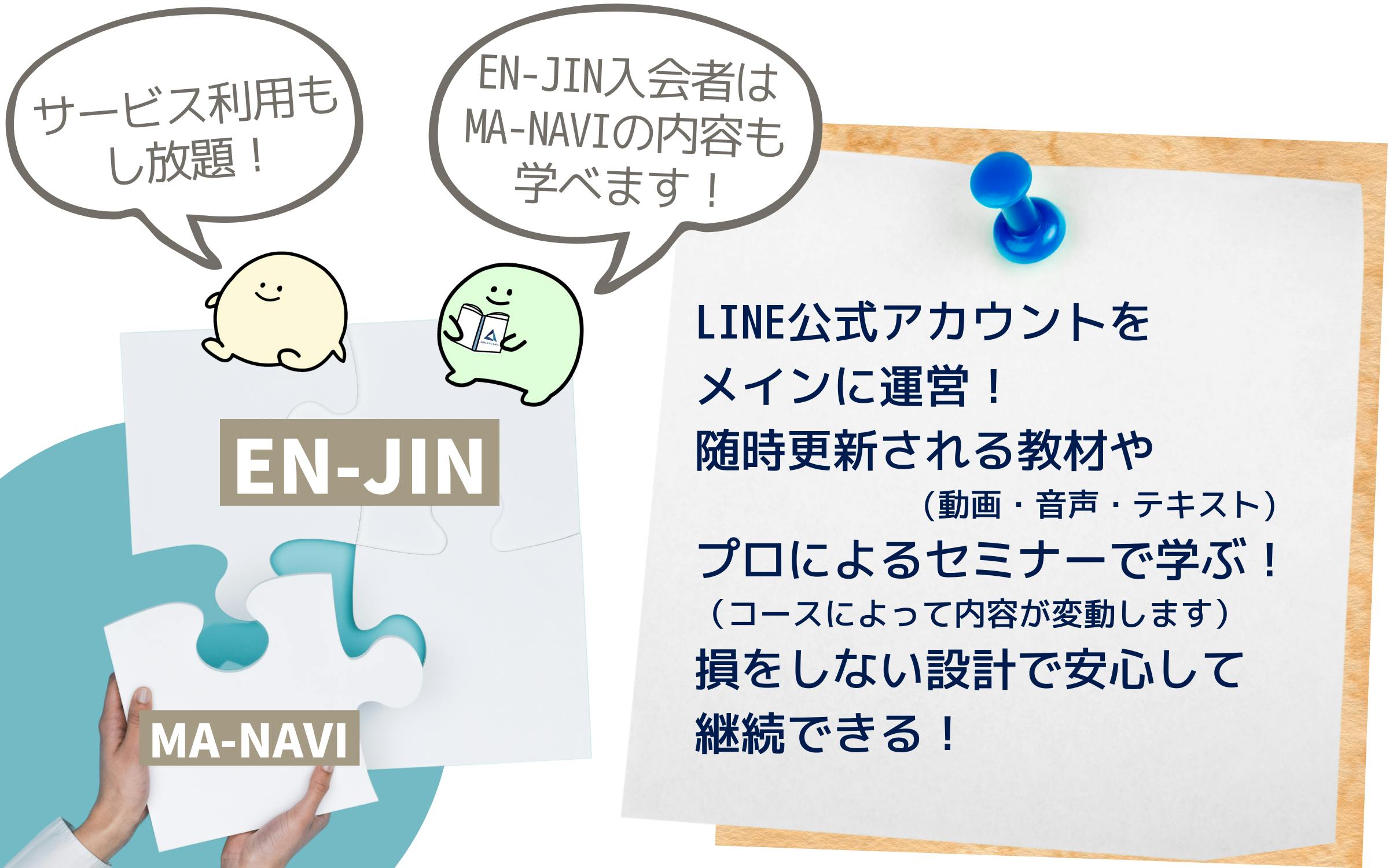 「MA-NAVI」で人生をよりよくする土台をつくり、「EN-JIN」でビジネス加速のヒントが得られる!