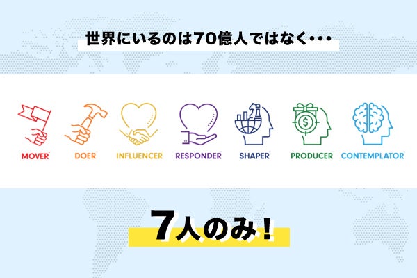 世界的にも豊かな多様性を持つアメリカで開発されたもので、様々な心理・性格を分析研究した結果、人間は主に7つのタイプに分類され、人とコミュニケーションする中でそれぞれ独自の特長・クセを持つことが判明しました。
