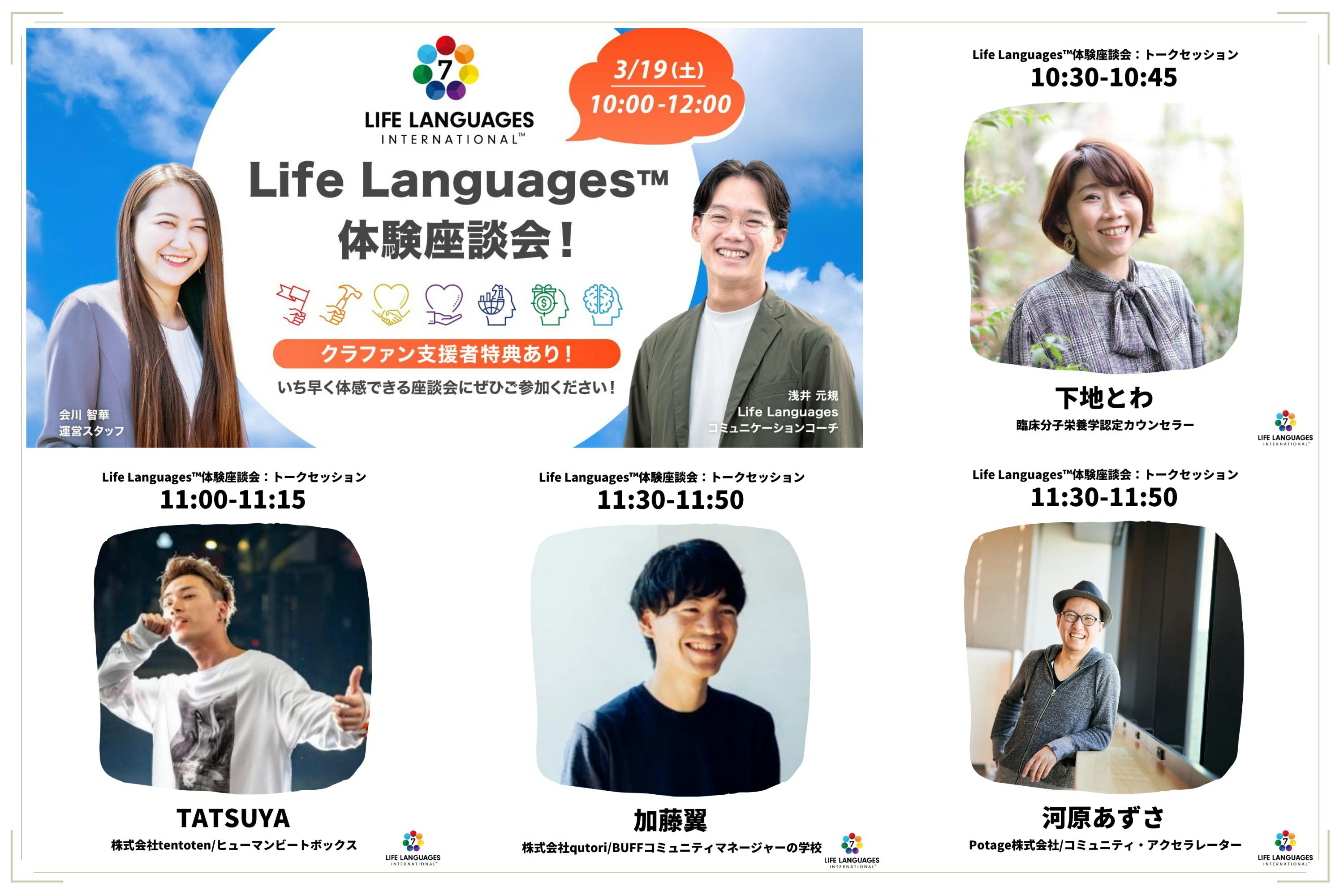 2022/03/15 21:0619日の豪華すぎるイベントゲストが決定しました!19日に開催されます「Life Languages™体験座談会」のスペシャルゲストが決定しました!各方面で活躍されているプロフェッショナルの方々と、Life Languagesについてお話しできるのが楽しみです!!一人目は、臨床分子栄養学認定カウンセラーの下地とわさんです!とわさんは、今回新たに、クラファンのリターンでもコラボしていただいております。とわさんには、私(浅井)の家族揃ってお世話になっており、細胞の分子レベルからみる栄養医学「分子栄養学」に基づき、栄養を体と心へしっかり回せるカウンセリングを実施されております。精神面、体調面、様々な方面において本当に変わります!ぜひ、イベントにてトワさんの提供されているカウンセリングの内容を深く知り、受けていただければと思います!二人目は、ヒューマンビートボクサーのTATSUYAさんです!TATSUYAさんは、ヒューマンビートボックスで世界一になられたご経験を持ち、パフォーマーとしてだけでなく、動画作成などのクリエイティブ関係や、メディア出演、街おこしなど様々な方面でご活躍されています!トークセッションでは、自分の強みの活かし方や、自分らしさなどについて、Life Languagesに絡めてお話ししたいと思います!そして、何よりもお人柄が最高なので、ぜひトークセッションを見に来ていただければと思います!三人目は、株式会社qutori-CEO/コミュニティマネージャーの学校の加藤翼さんです!翼さんは、「共創」をテーマにしたコミュニティマネージャーとして、他分野のコミュニティを横断する事業を多数手がけており、現在、100BANCH, 渋谷QWSのコミュニティマネージャー を務めています。僕は、個人的に、同年代の彼にいつも刺激を受け、励まされております!Life Languagesは、彼の運営するBUFFコミュニティマネージャーの学校に導入していただいており、コミュニティの視点からLife Languagesについて色々お話ししていきたいと思います!四人目は、Potage株式会社-CEO/コミュニティアクセラレーターの河原あずささんです!あずさんは、コミュニティ・アクセラレーターとしてイベント企画、企業のコミュニケーションデザイン、人材育成などをされています。また、『ファンを育み事業を成長させる「コミュニティ」づくりの教科書』という本を出されており、僕たちも勉強させていただいております!また、実は今回のLife Languagesの翻訳にも携わっていただいたり、紹介動画に奥様と共にご出演いただいたり、大変お世話になっております!コミュニティマネージャーの翼さんと共に、Life Languagesとコミュニティについてお話ししていきたいと思います!改めて、豪華すぎるゲスト陣にすごくワクワクしております!19日は、ご参加くださる、みなさんと共にLife Languagesを体験するイベントですが、トークセッションを通して、みなさんの診断結果の理解を深め、活用方法なども明確になっていけばと思っております!ぜひ、お誘い合わせの上、ご参加ください!!詳細はこちらから! もっと見る