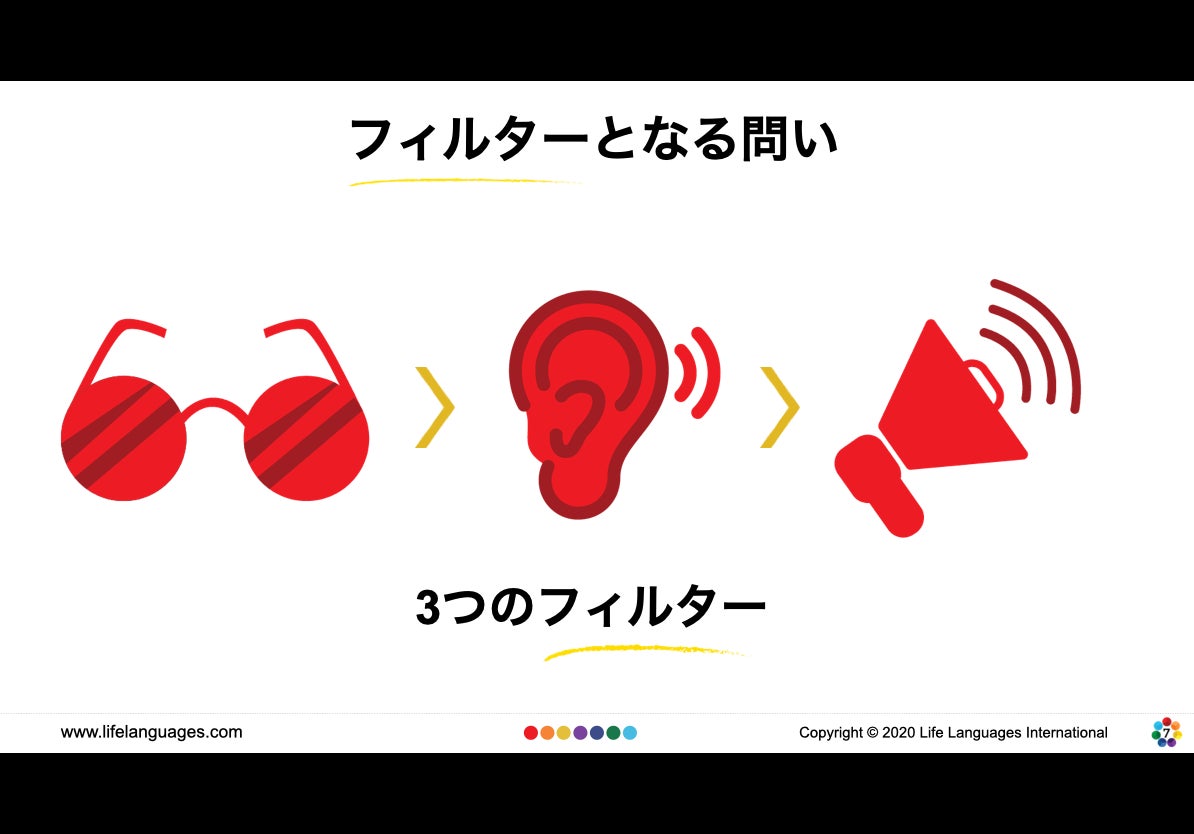 各言語は、それぞれ異なるフィルターとなる問いを持っており、この問いを持ちつつ人とコミュニケーションをとっていきます。