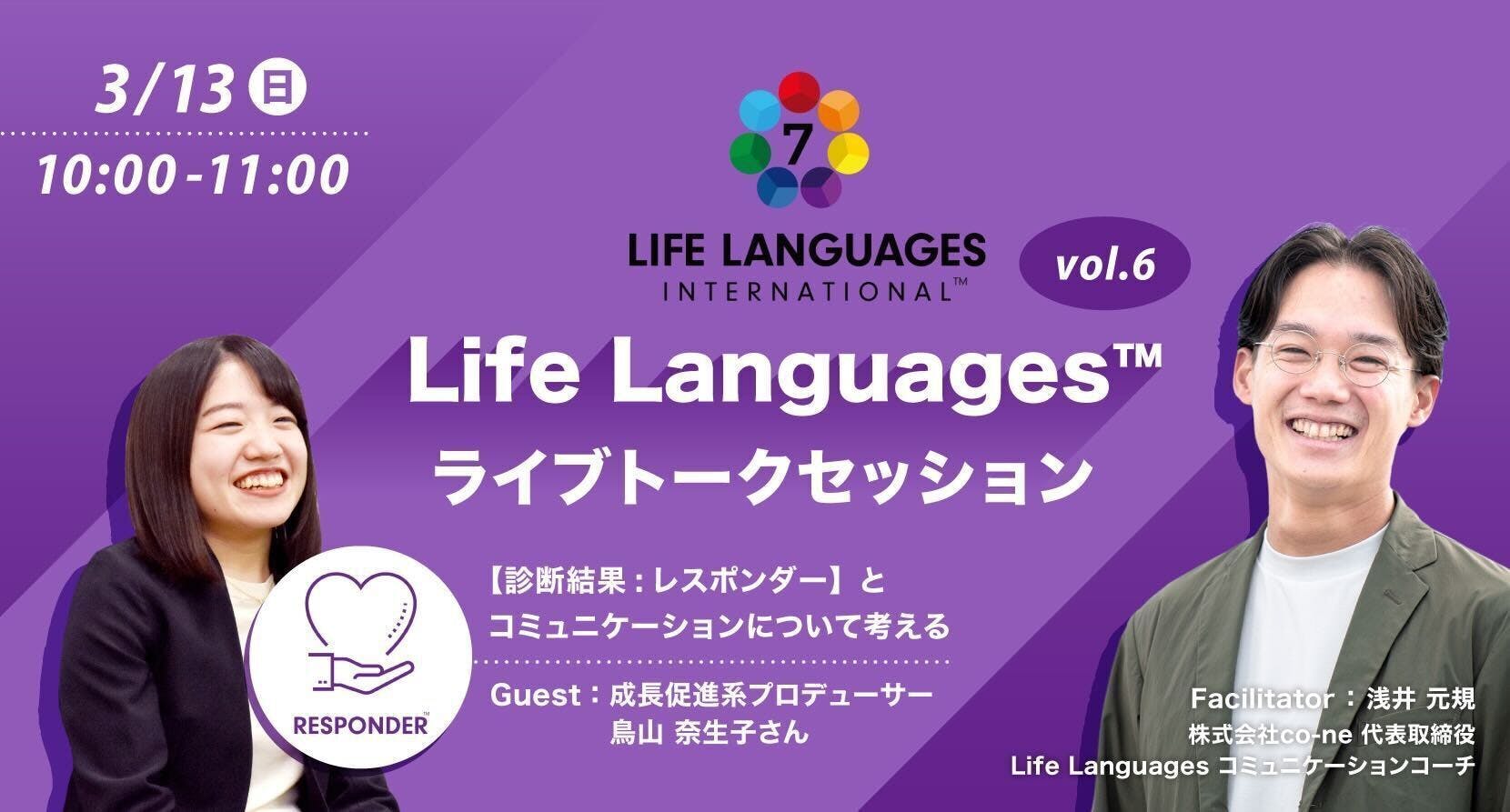 ライブトークセッションでは、Life Languages™を受けたゲストをお招きし、その方の持つコミュニケーション言語特性を紹介しつつ、共に7つの言語を理解していきます!