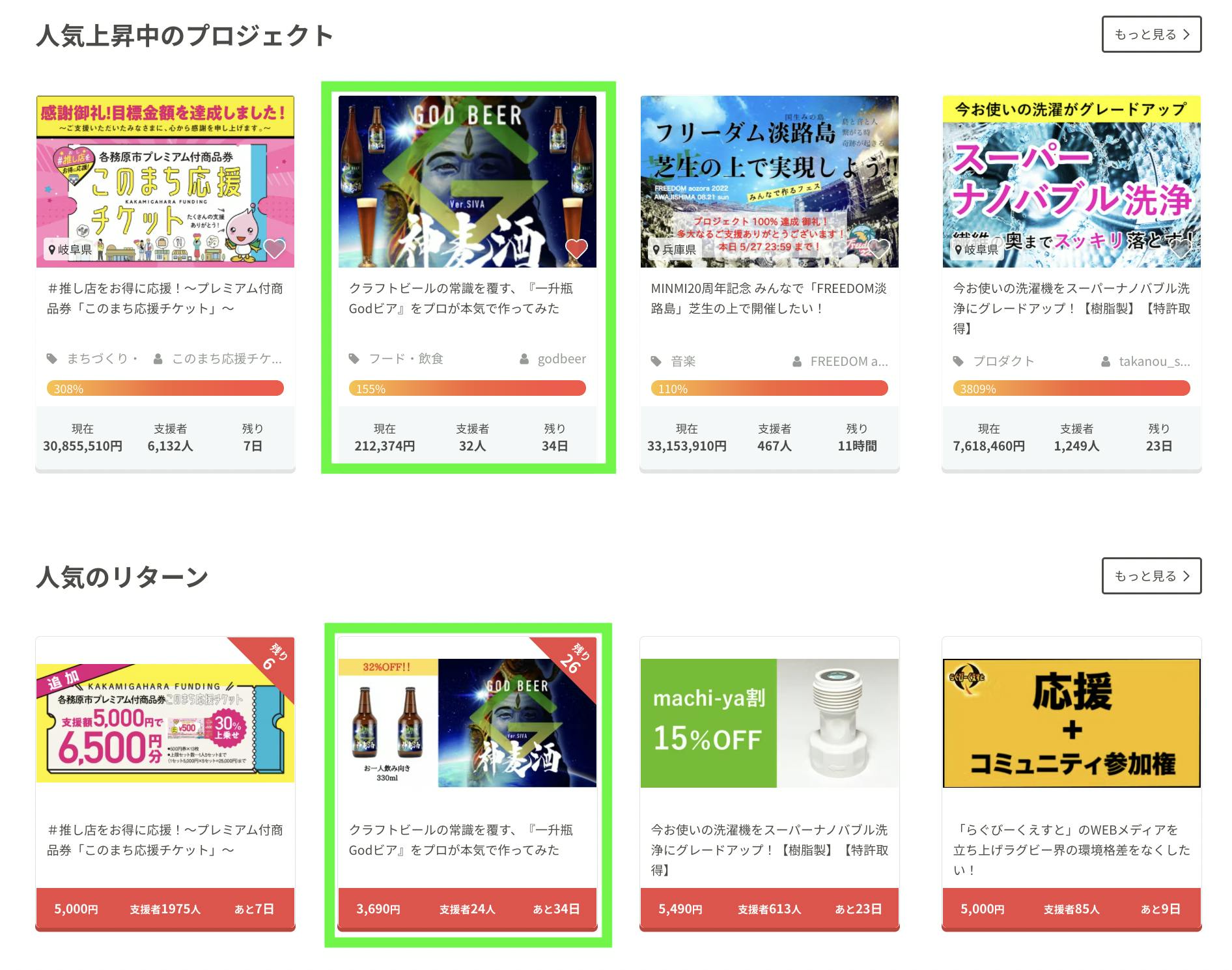 ・人気上昇中のプロジェクト 飲食店・フードのジャンル1位