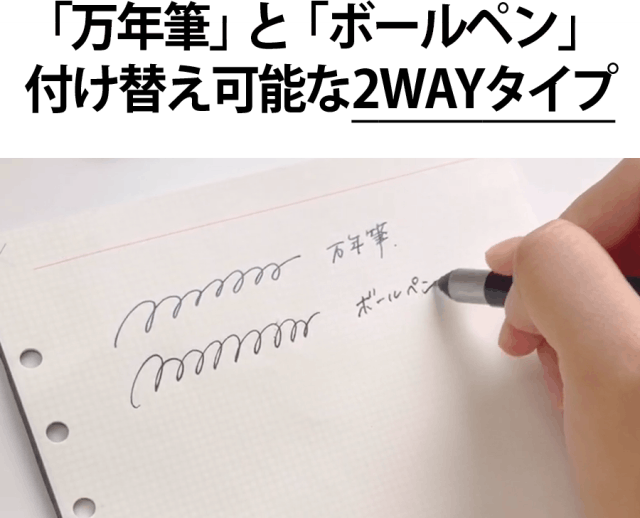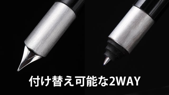 万年筆とボールペンの付け替え可能な2WAYタイプ。