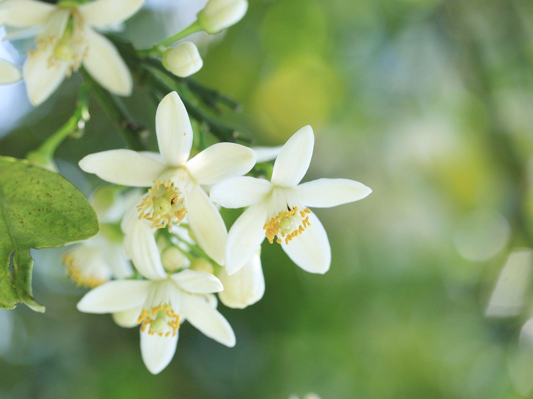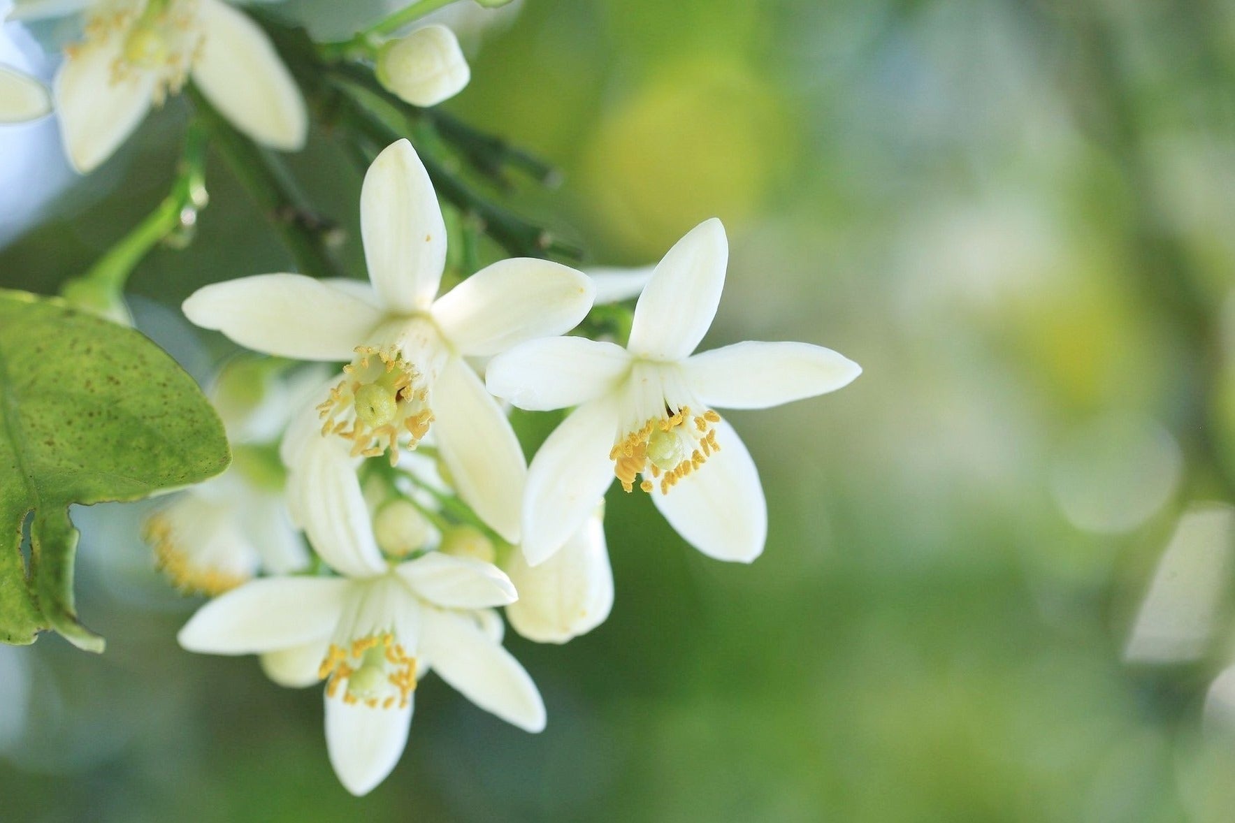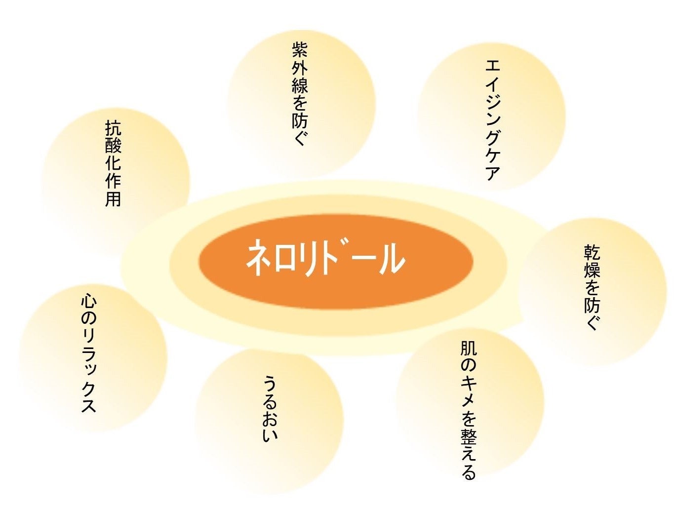 メインの原料となるネロリは、甘夏みかんの花から得られる精油で、花1キログラムから約1グラムしか採れない貴重なオイルです。