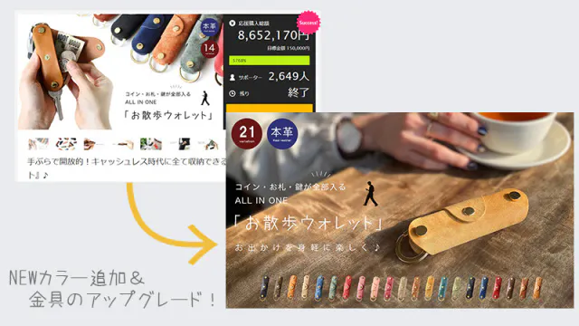 初見の方も多いと思いますが実は、当プロジェクトは前回他社のクラウドファンディングでSUCCESSした『お散歩ウォレット』改良版です。