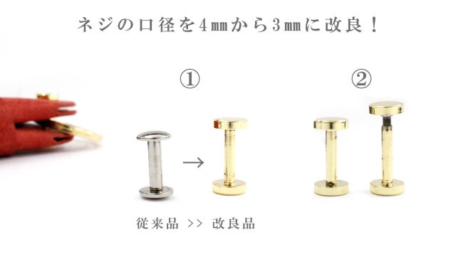 従来品の4㎜ネジでは、取付可能な鍵と取付不可な鍵がありましたが3㎜の改良ネジでは口径を3㎜にすることでほぼ全ての鍵が取付できるようになりました。