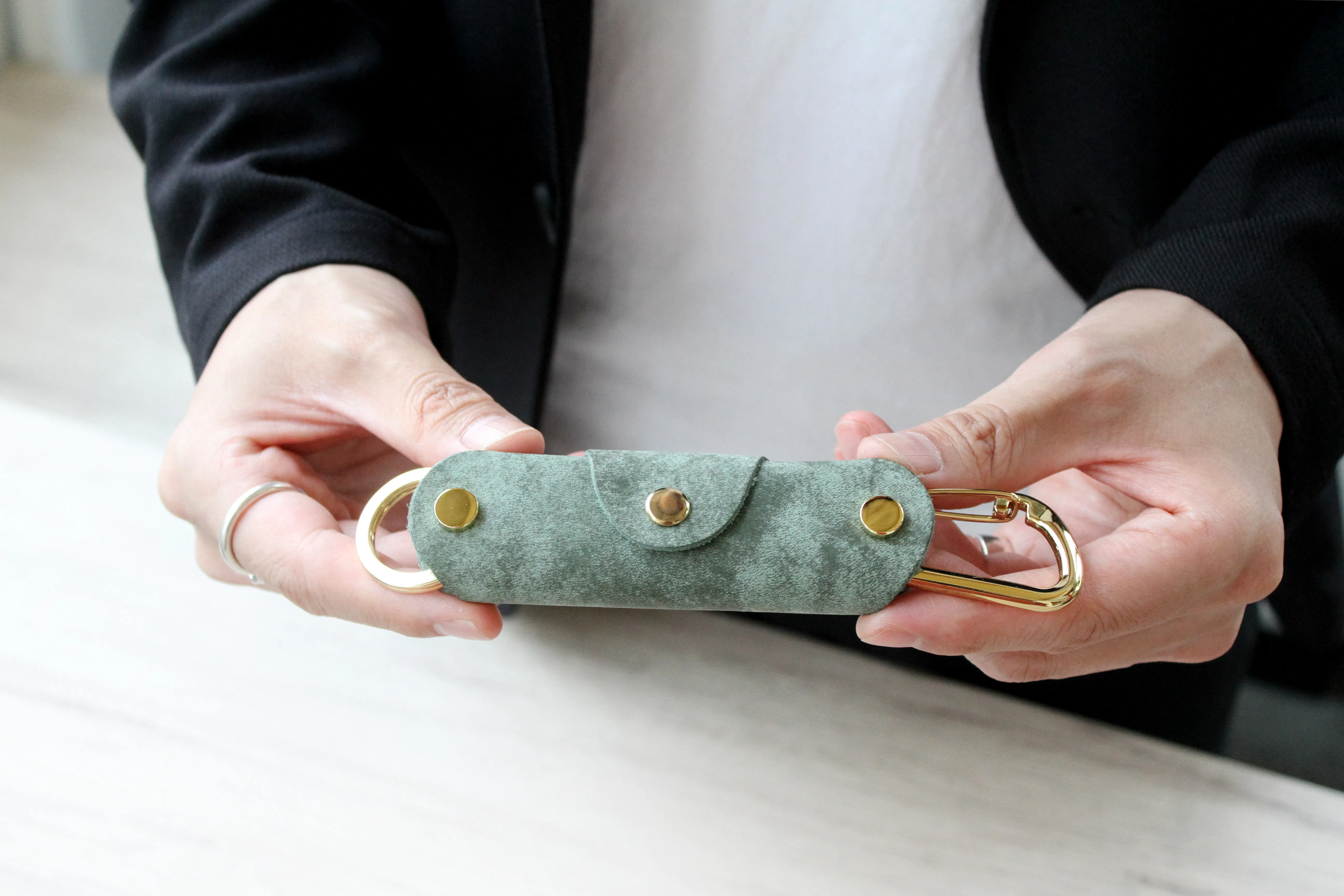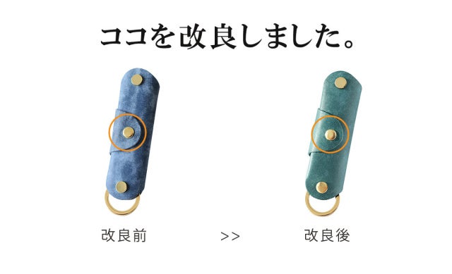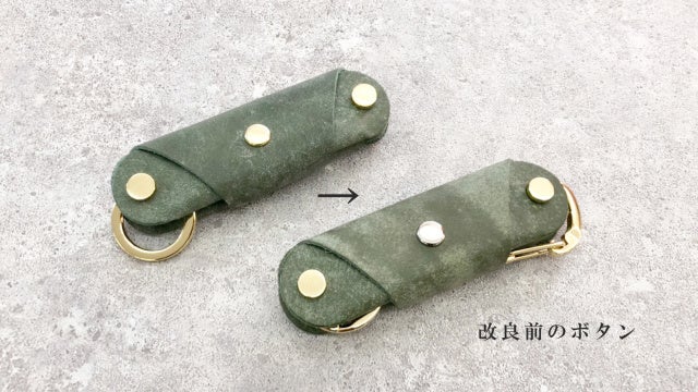 今回の改良版では特に触れる部分の多いバネホック(ボタン)部分を真鍮無垢製に素材を変更し、再リリースしております。