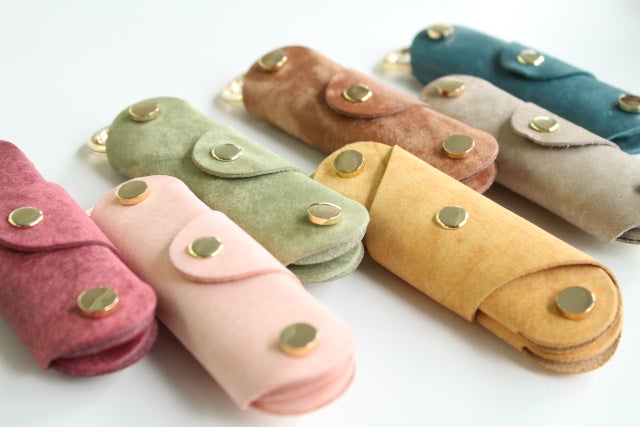 植物タンニンなめしには珍しいパステルカラーをラインアップしたプエブロベリーはオイルをしっかりと含み、切り口まで美しい我々制作サイドでも一押しの革となります。