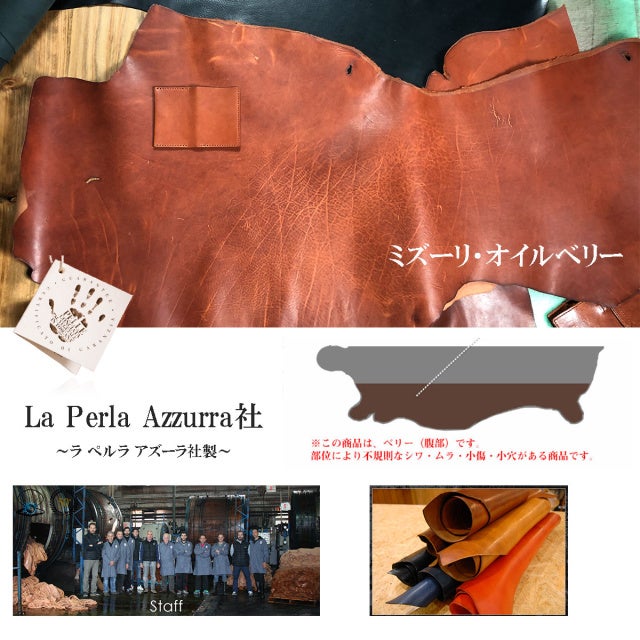 イタリア トスカーナ地方にて、昔ながらのやり方にこだわり、100%植物タンニン鞣しの高級のレザーを生み出し続けるLa Perla Azzurra社のオイルベリーレザー。