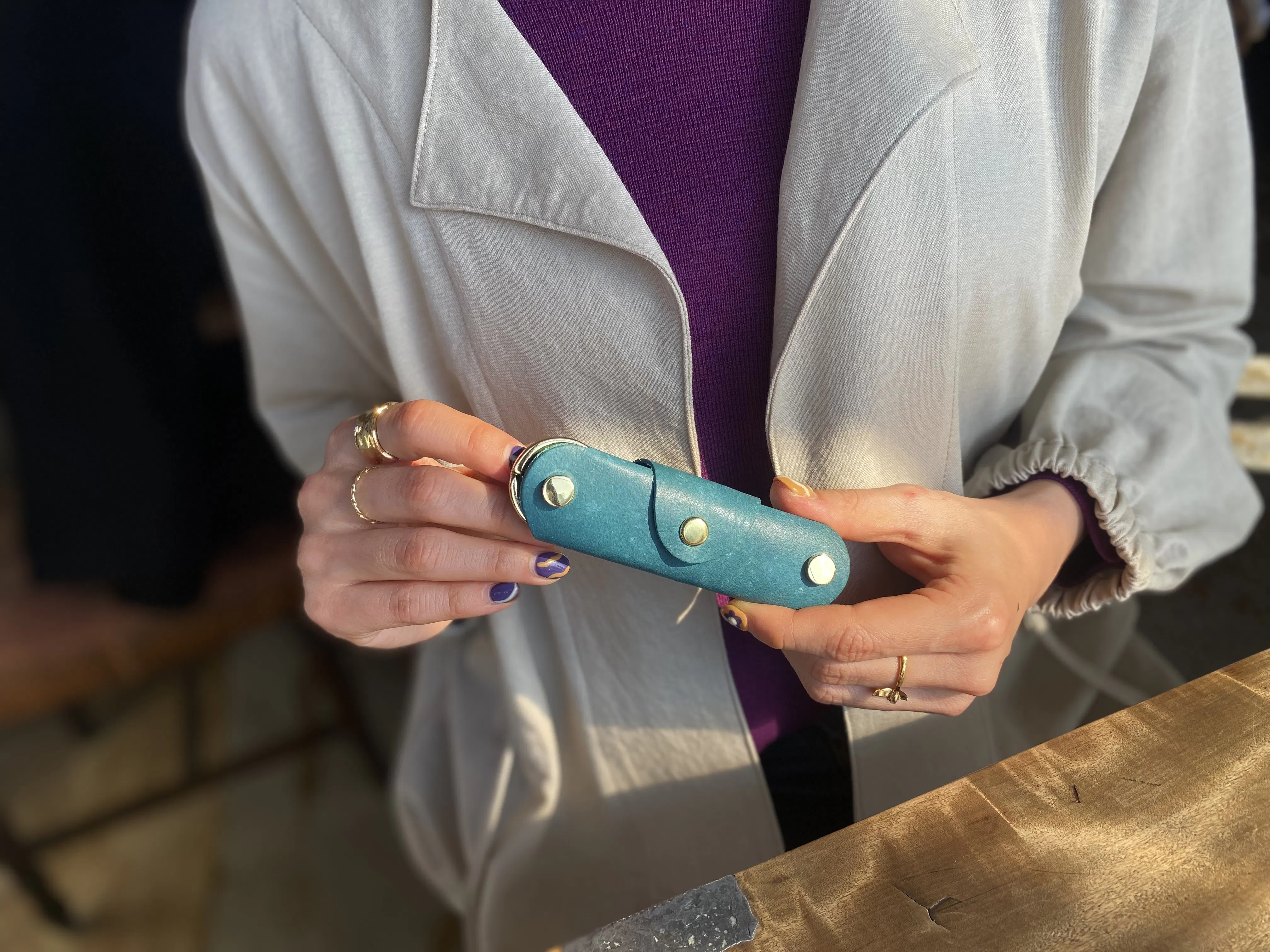 ”毎日持ち運ぶヘビーユース品の為、ボタンが擦れてしまい、真鍮メッキが少しずつ剥がれてきてしまいました”とお声を頂きました。