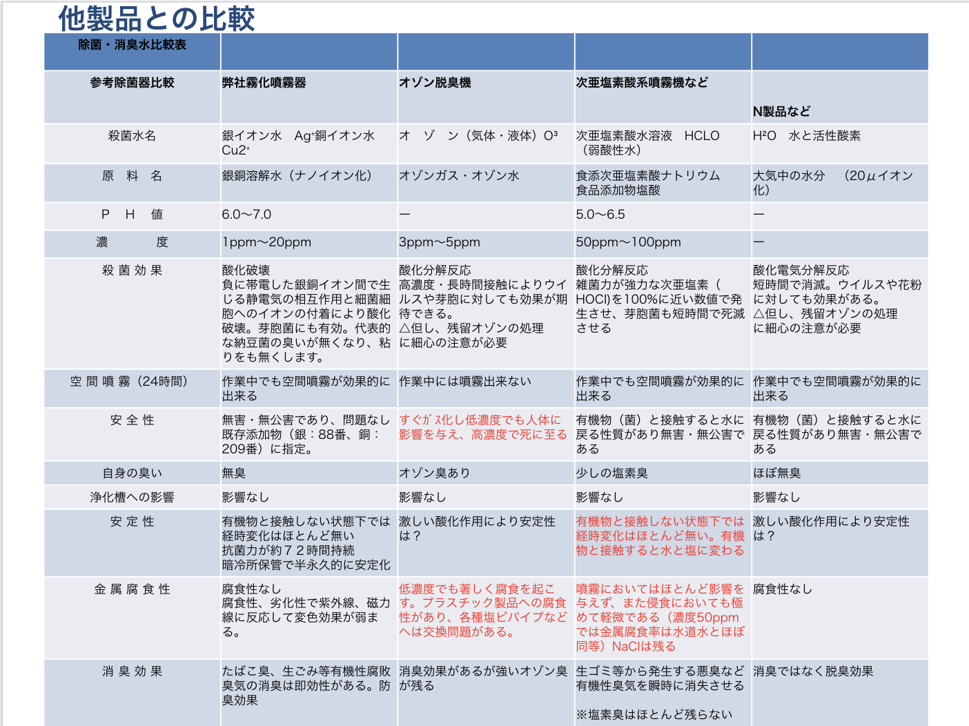 - 他社製品との銀銅イオン水噴霧の大きな違いは