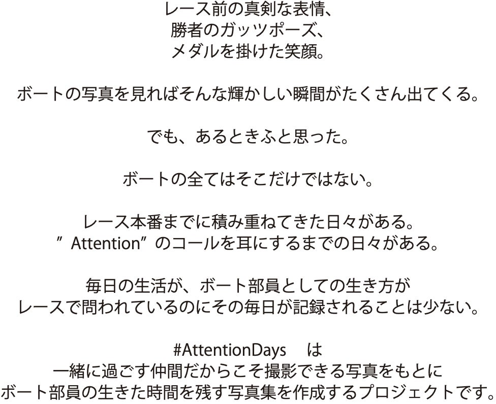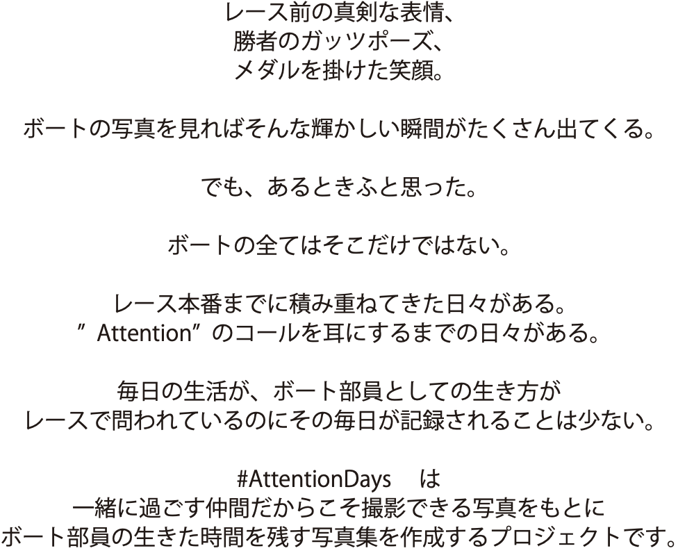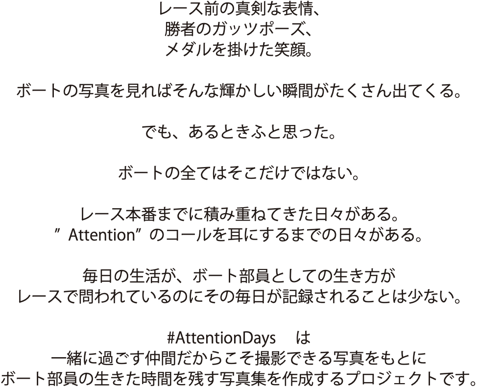 "ボート部員の生き方を追いかける写真集"#AttentionDaysを作成したい!